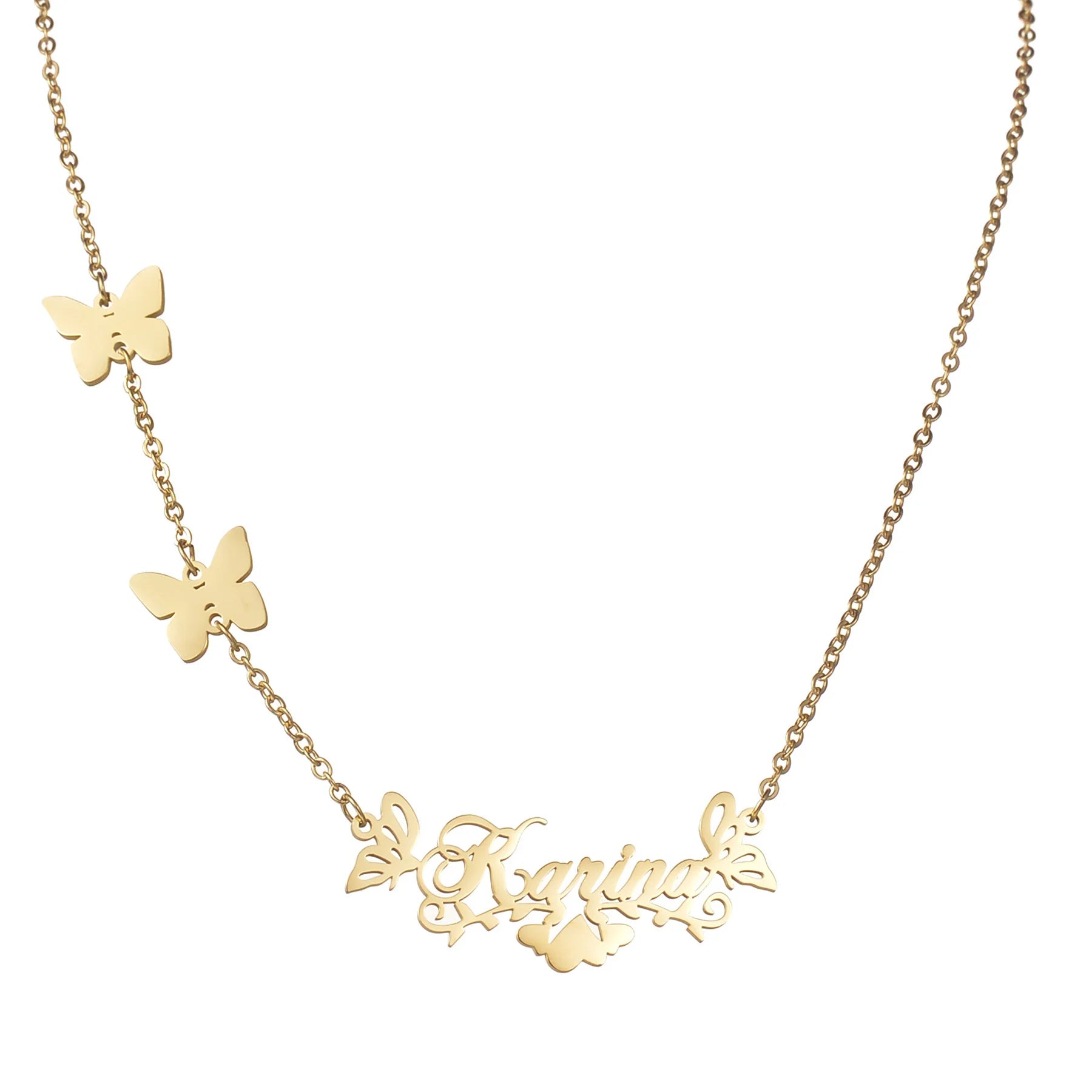Acheerup Personalized Name Butterfly Necklace for Women Stainless Steel Pendant Customized Letter Choker Birthday Jewelry Gift