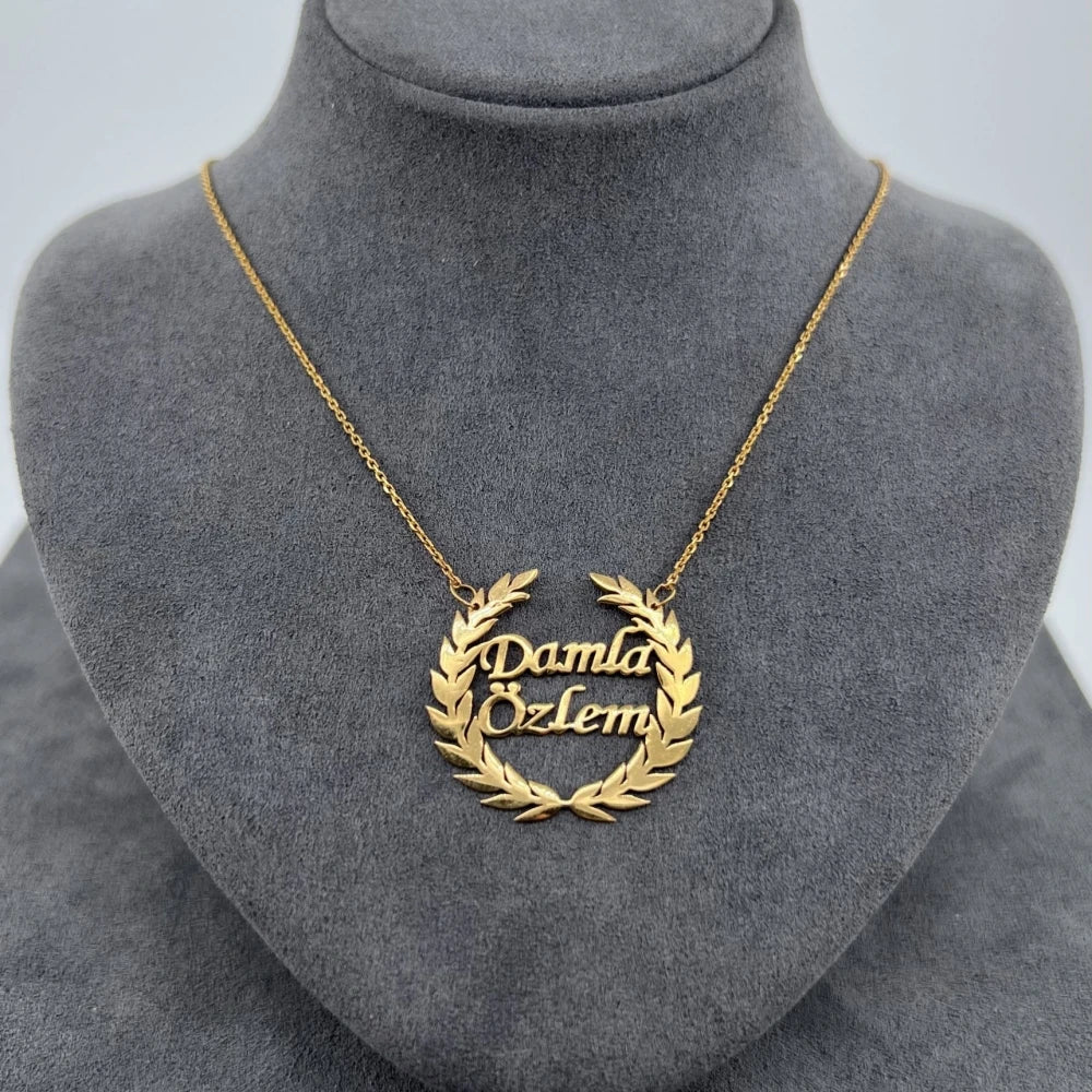 Custom Laurel Wreath Name Necklace Women Girl Jewelry Personalized Stainless Steel Couple Nameplate Necklace Gifts For Her