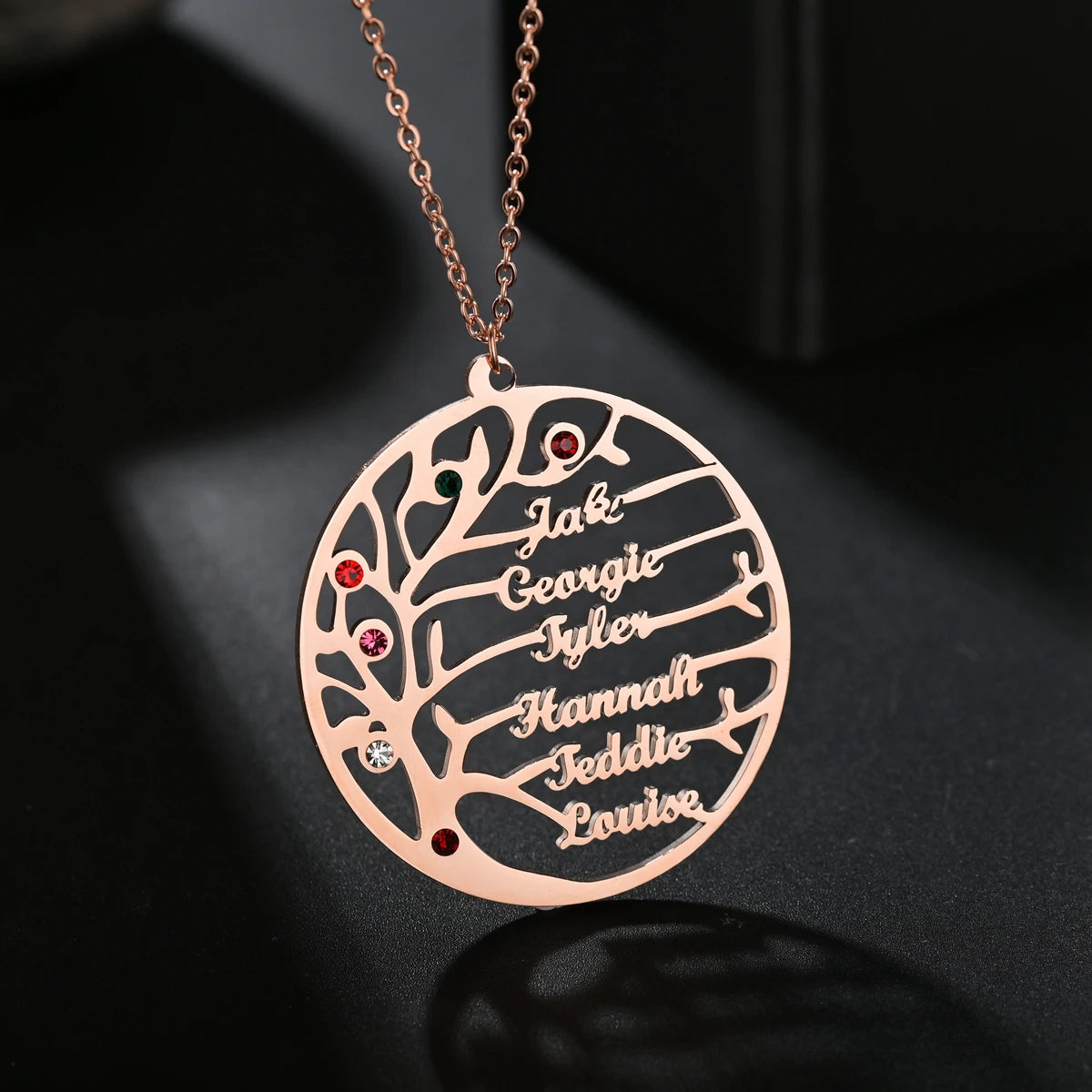 Life Tree Family 1-6 Names Necklace Personalized Stainless Steel Summer Nameplate with Birthstone For Women Men Birthday Gift