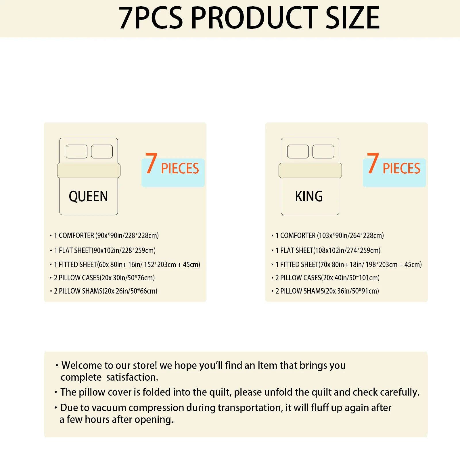 7-Pcs floral print comforter set, soft and comfortable, bedding set, room decoration, suitable for all seasons