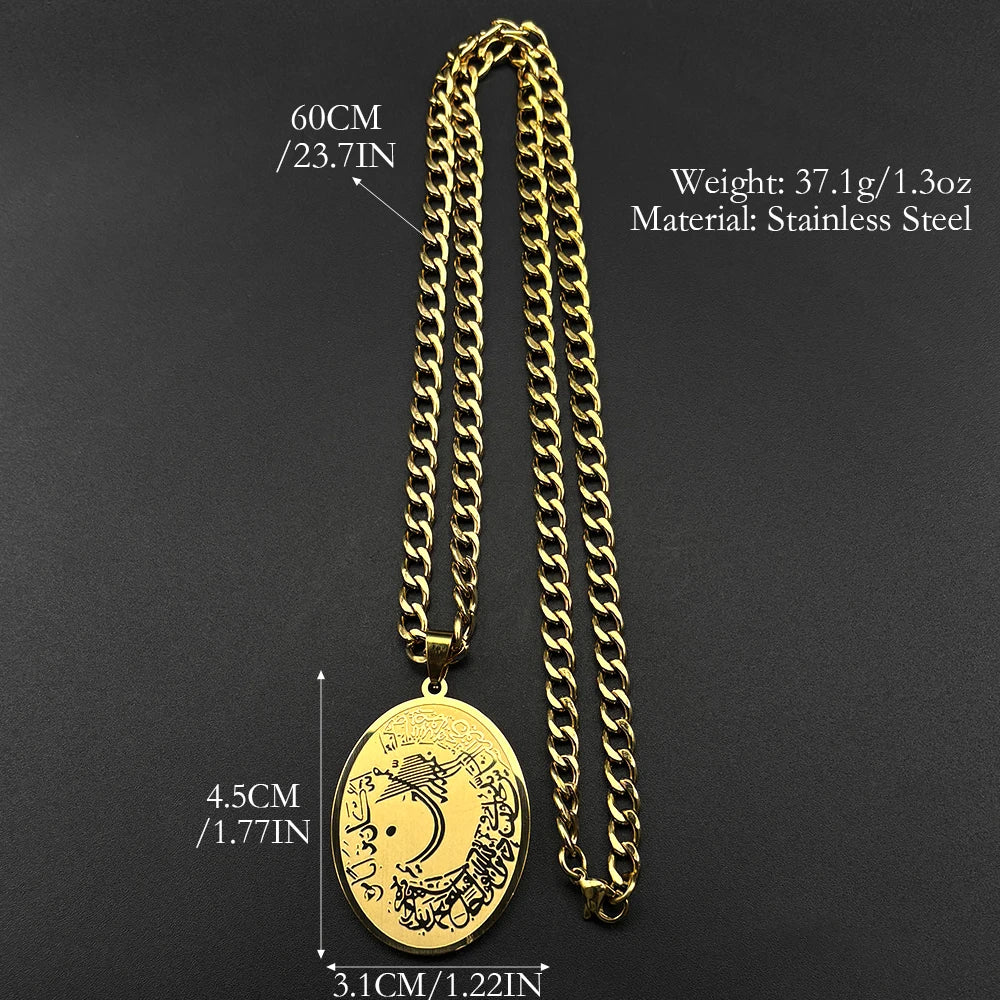 Allah Quran Arabic Letter Oval Pendant Necklaces for Women Men Stainless Steel Gold Color Islam Muslim Hip Hop Chains Jewelry