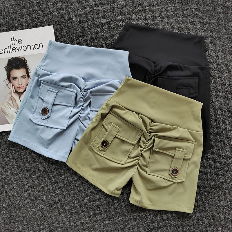 New Yoga Shorts With Pocket Women Sport High Waist Tights Buttocks Fitness Workout Leggings Push Up Gym Clothing Cycling Shorts