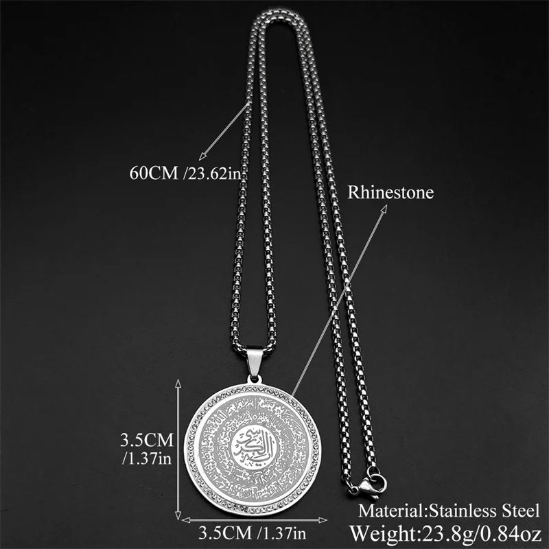 Stainless Steel Muslim Islam Quran Allah Crystals Chain Necklaces for Women Men Gold Color Round Pendants Necklaces Jewelry Gift