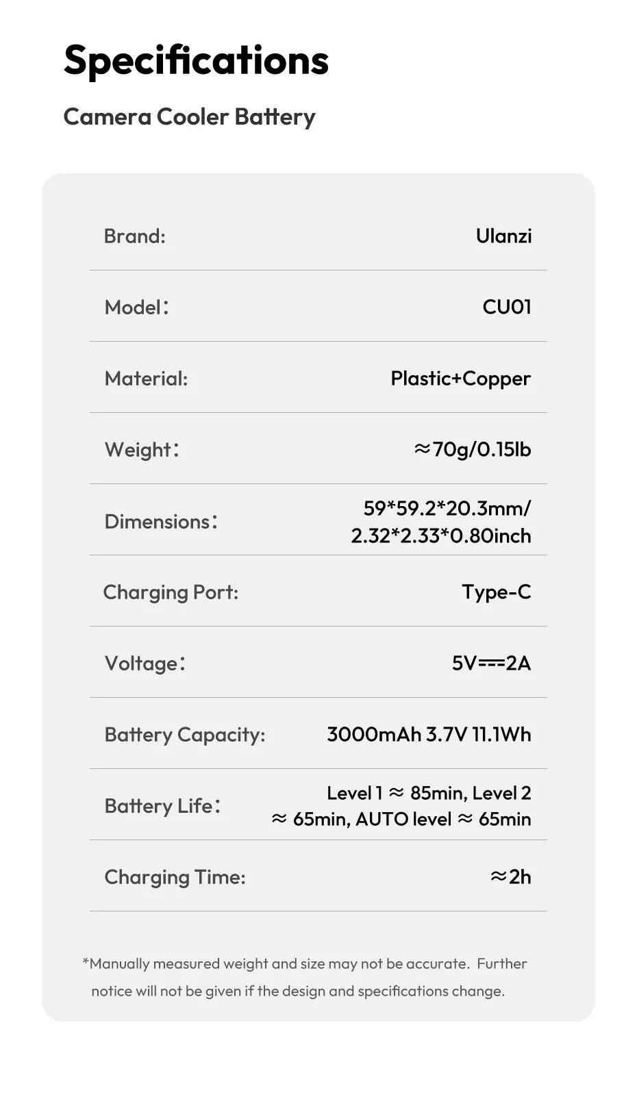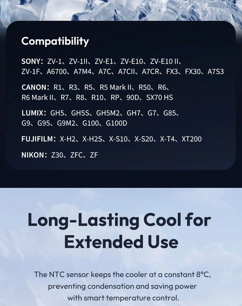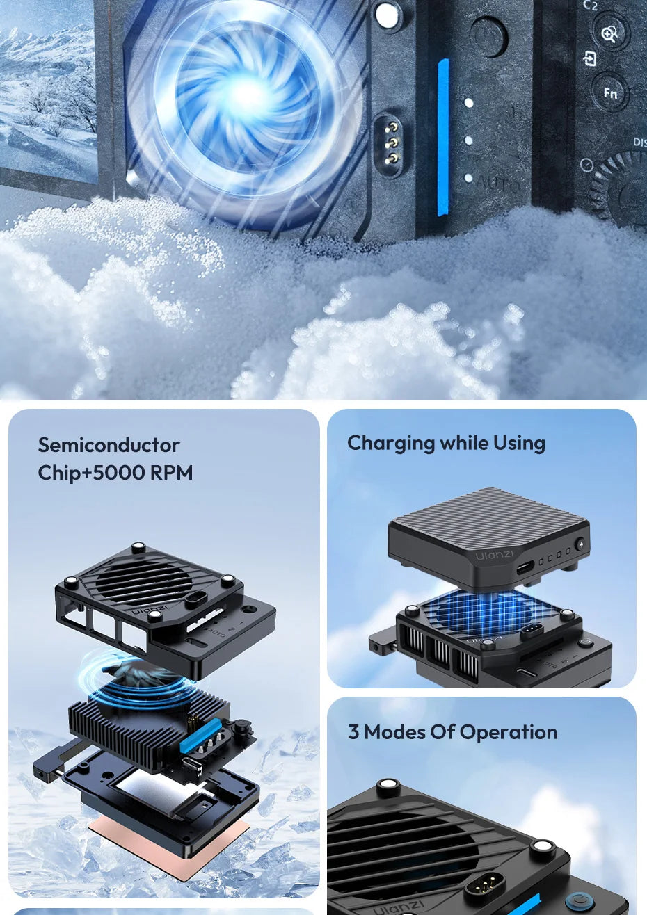 Ulanzi CU01 Thermostatic Semiconductor Camera Cooler Camera Cooling Fan Radiator 4K Recording Kit Heat Sink for Sony Canon Nikon