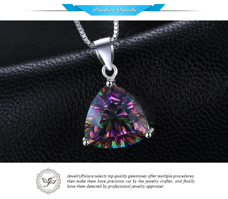 JewelryPalace Natual Multiple Cut Rainbow Fire Mystic Quartz Solid 925 Sterling Silver Pendant Necklace for Women No Chain