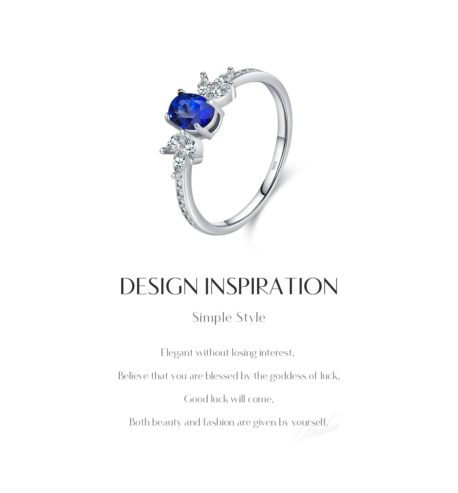 MODIAN 925 Sterling Silver Classic Oval Royal Blue Cubic Zirconia Ring For Women Wedding Engagement Statement Fine Jewelry