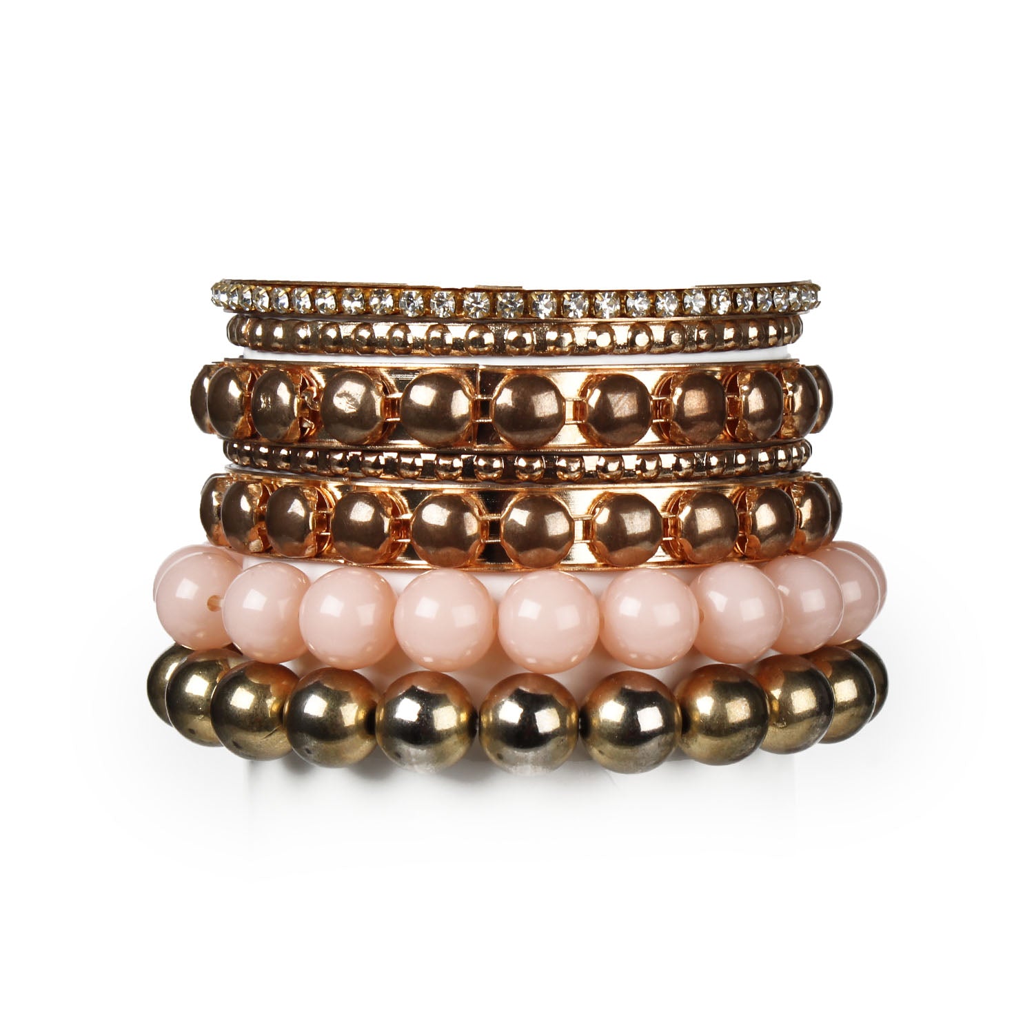 7-Piece Retro Burnished Gold Inlaid Rhinestones Bangle Bracelet Set