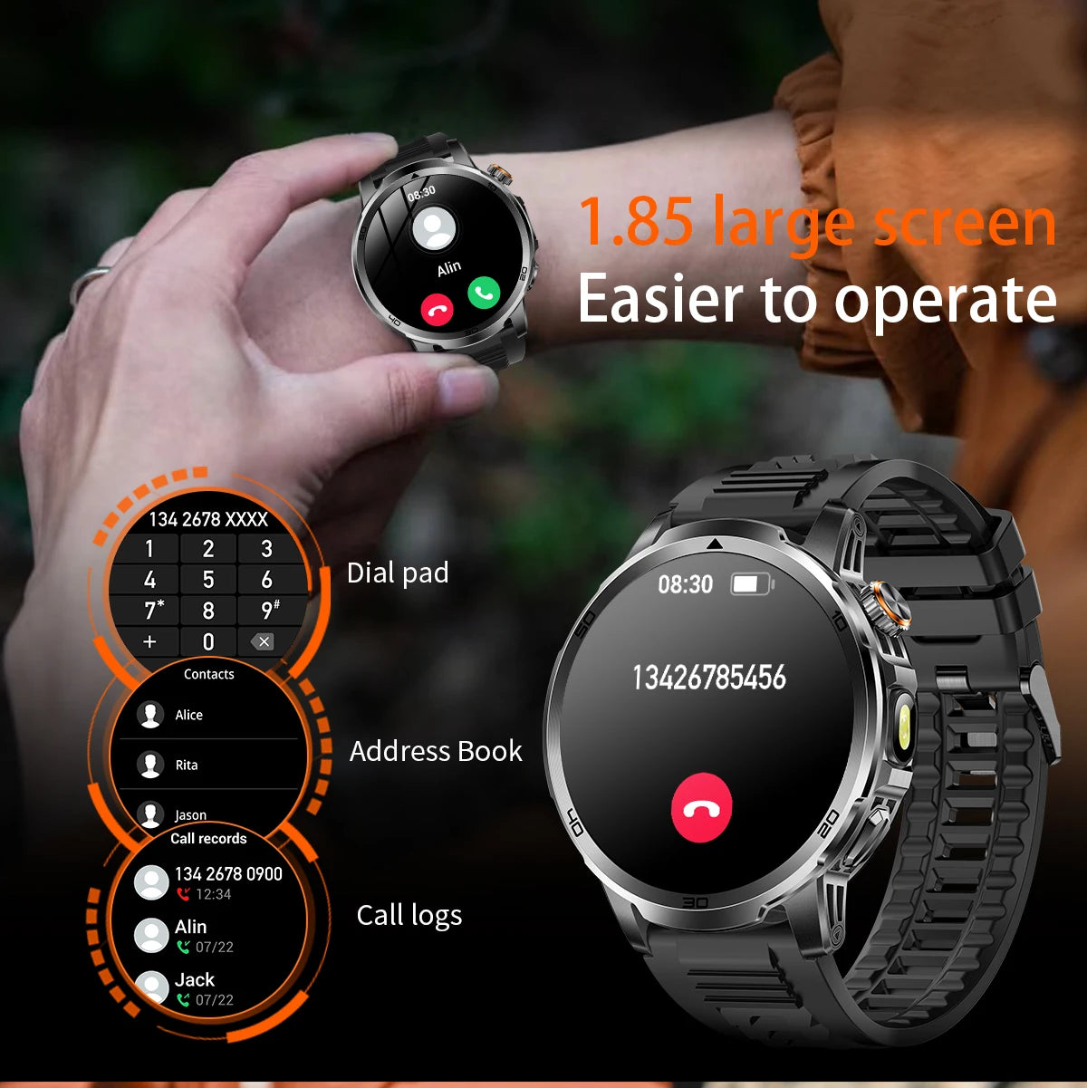 2026 New Outdoor Military Smart Watch For Men 1.85" AMOLED 1000mAh Battery IP69K Swim Flashlight Heart Rate Wireless Call Watchs