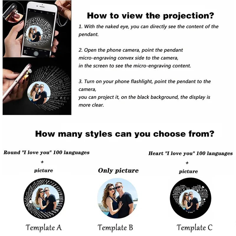 Custom Photo Necklace Personalized Picture Projection Necklace Rose Flower Projective Pendant Necklace Memorial Gifts For Women