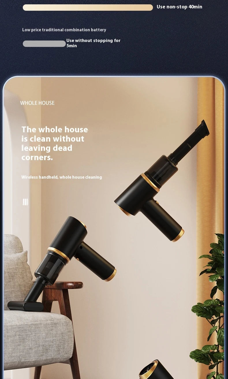 High power portable wireless vacuum cleaner, compatible with both car and home use, equipped with various accessories