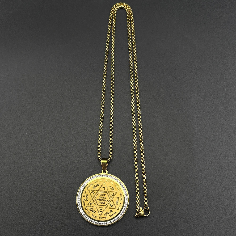 Jewish Hebrew Kabbalah Star of David Rhinestones Pendant Necklace for Women Men Stainless Steel Gold Silver Color Chain Jewelry