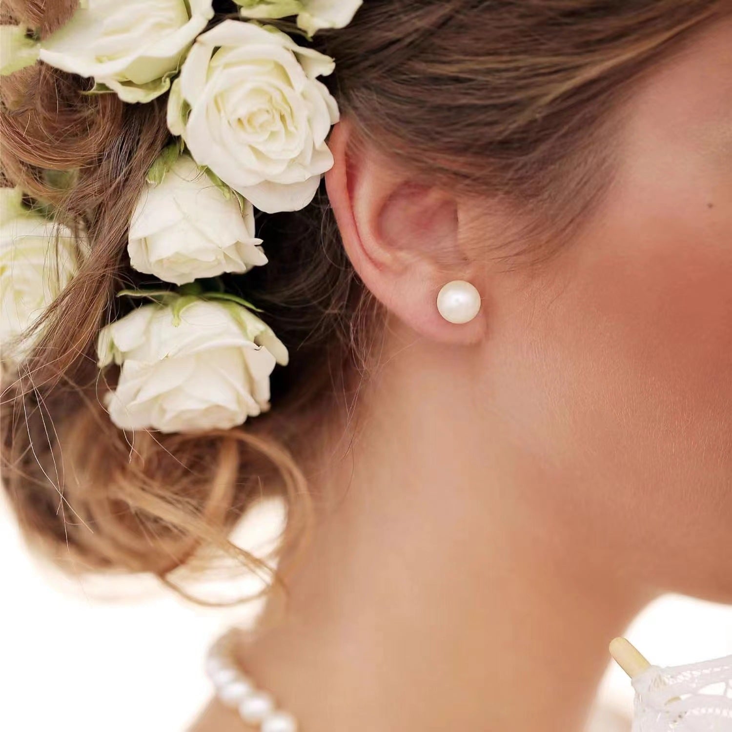 S925 Sterling Silver Needle Natural Freshwater Pearl Ear Studs