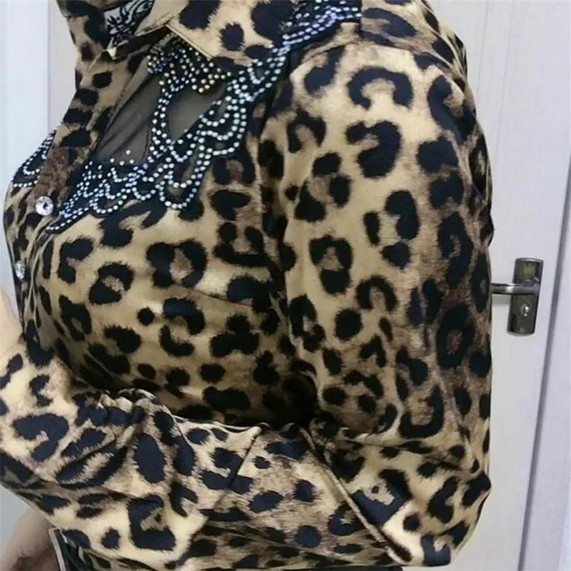 Trendy Streetwear Offce Women Blouses Hot drill Mesh Chiffon Shirts Long sleeve Lapel Buttons Female Blusas Tops Casual Shirts
