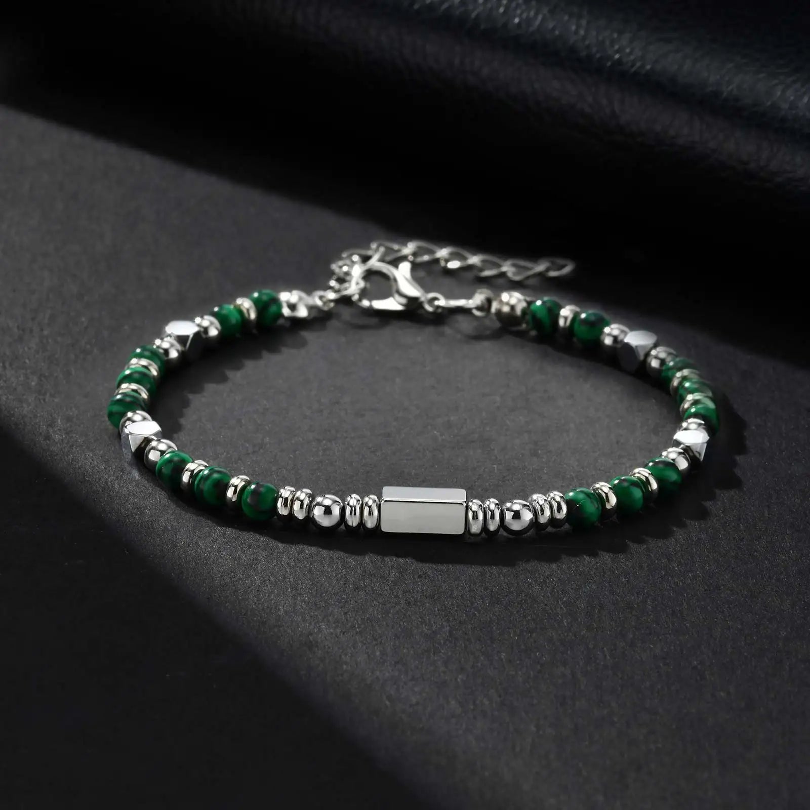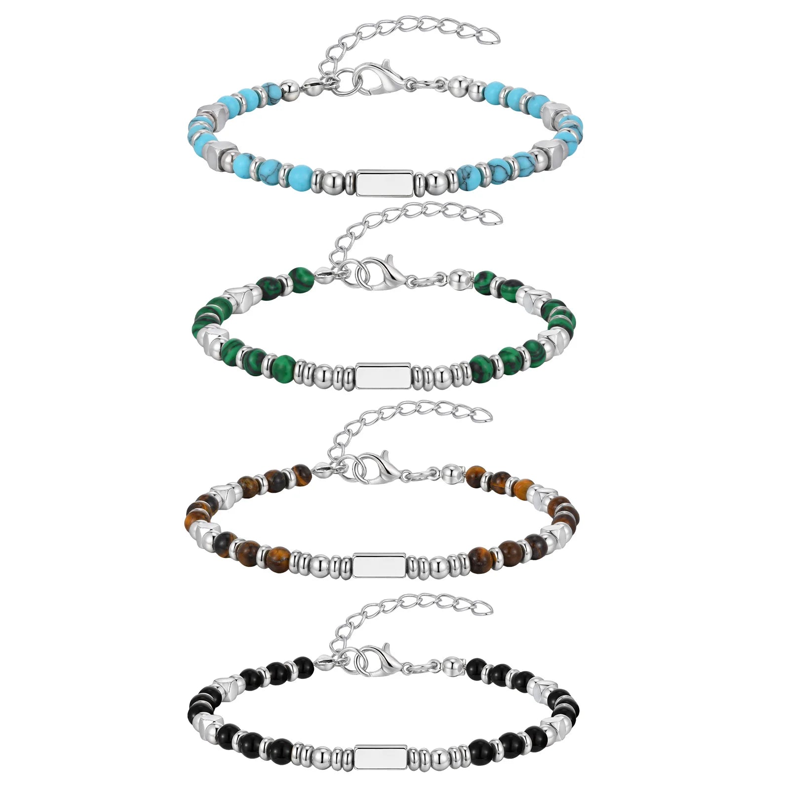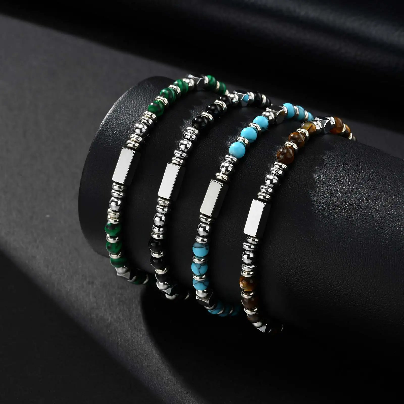 Trendy Unique Natural Stone Beaded Bracelet, Stainless Steel Chain Wristband Bracelet, Classic Tiger Eye Stone Jewelry for Men