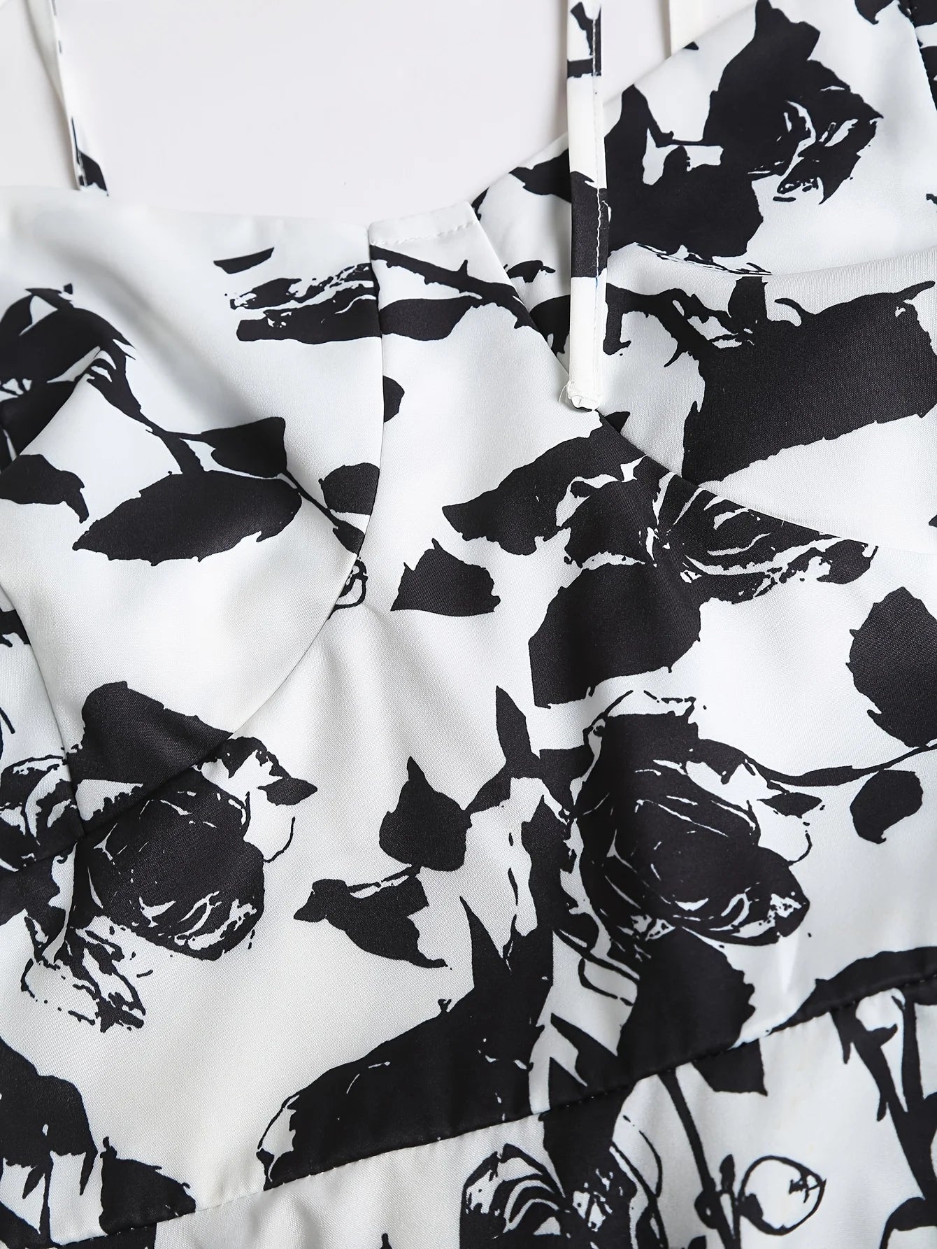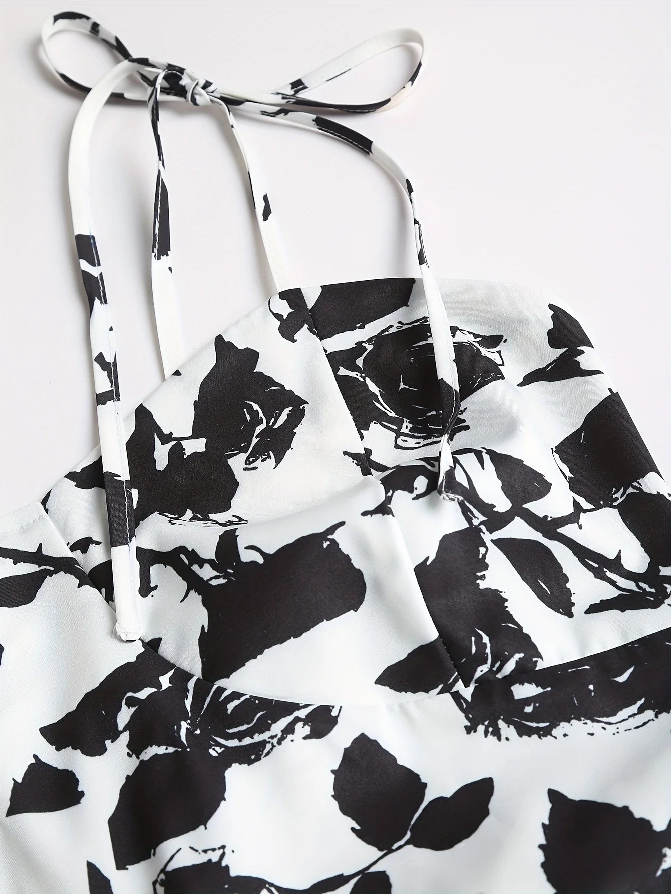 2024 European and American fashion plus size women's new flower print A-line skirt bow tie slit dress