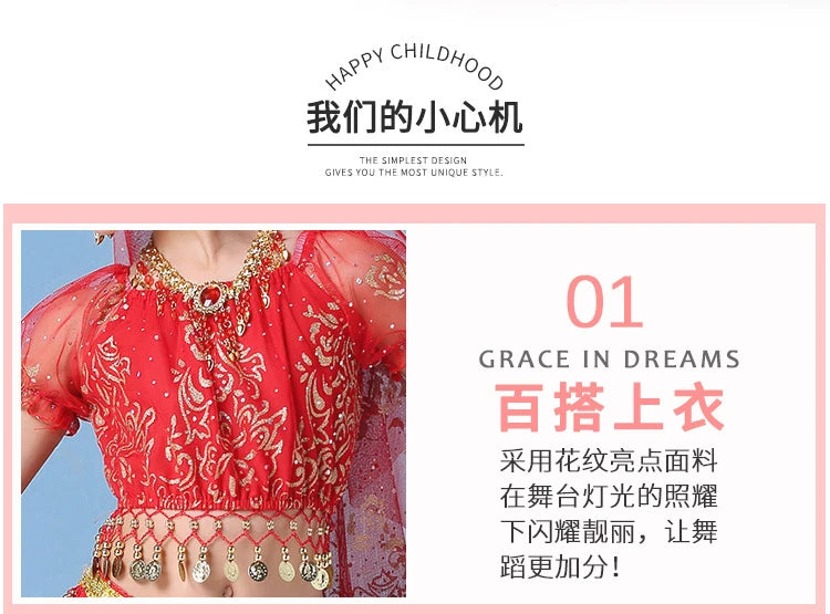 Children Indian Belly Dance Costume Girl Dress Bollywood Belly Dance 4Pcs/Set Performance Kids With Coins Accessories