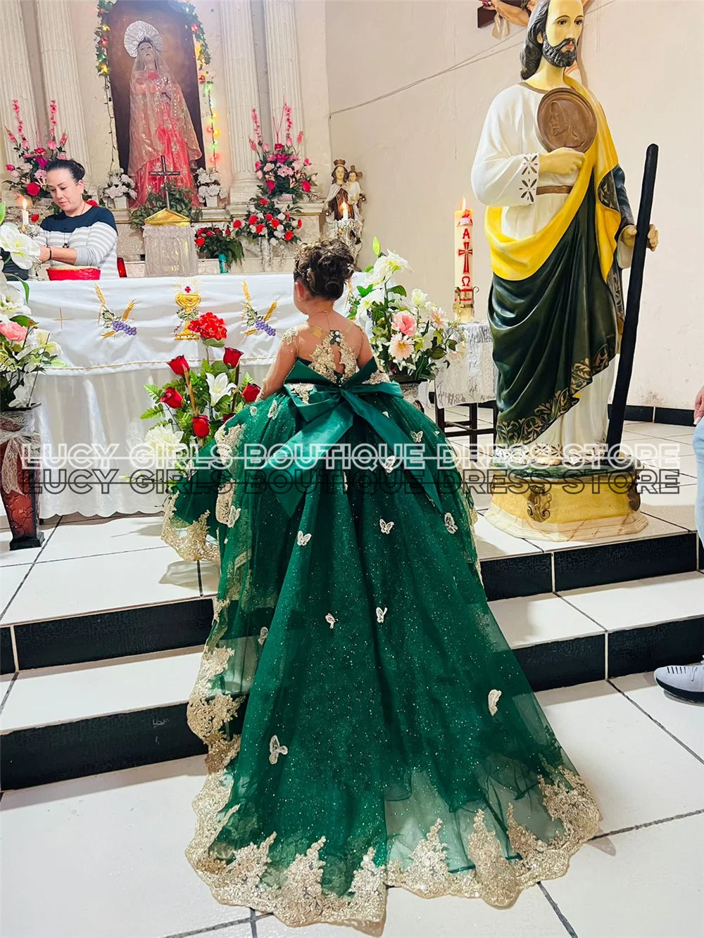 Elegant Quality Dark Blue Flower Girl Dress Tulle Fluffy Exquisite Lace Applique With Bow Little Princess Birthday Party Gowns