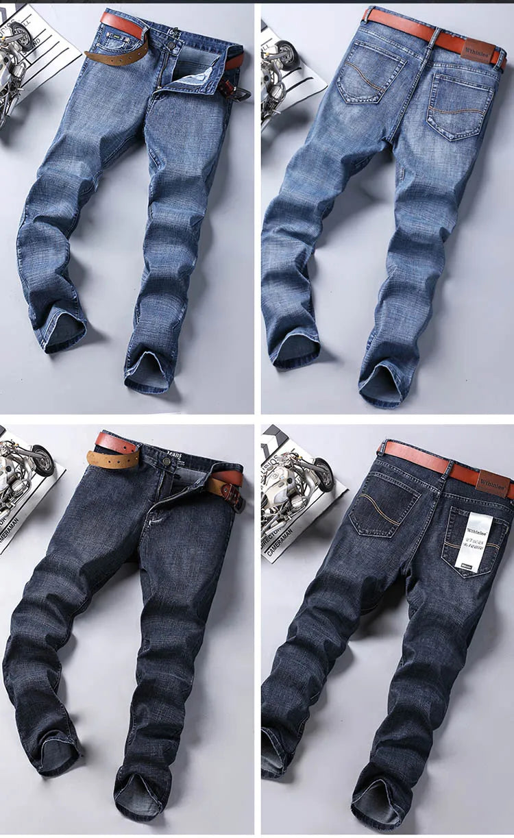 Men New Business Men's Jeans Casual Straight Stretch Fashion Classic Blue Black Work Denim Trousers Male Brand Clothing 28-40