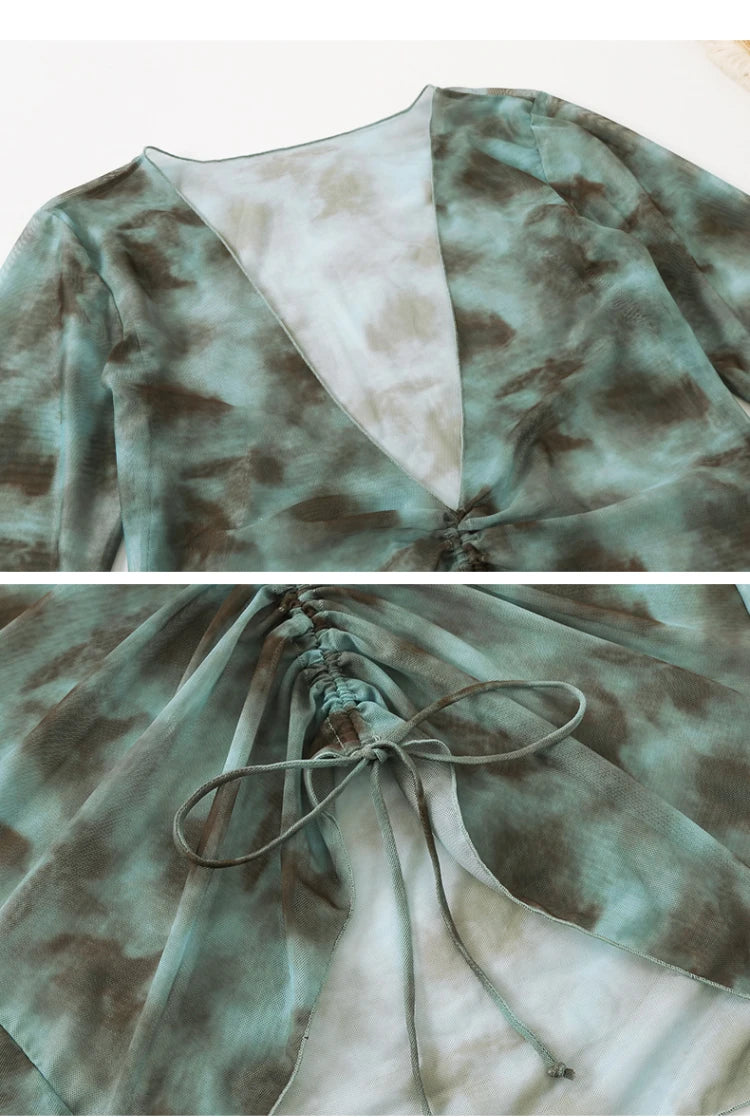 XL-5XL Plus Size Vacation Bikini Sexy Three-Piece Split Long Sleeve Swimsuit Women Summer Blue Pleated Beach Party Swimsuits