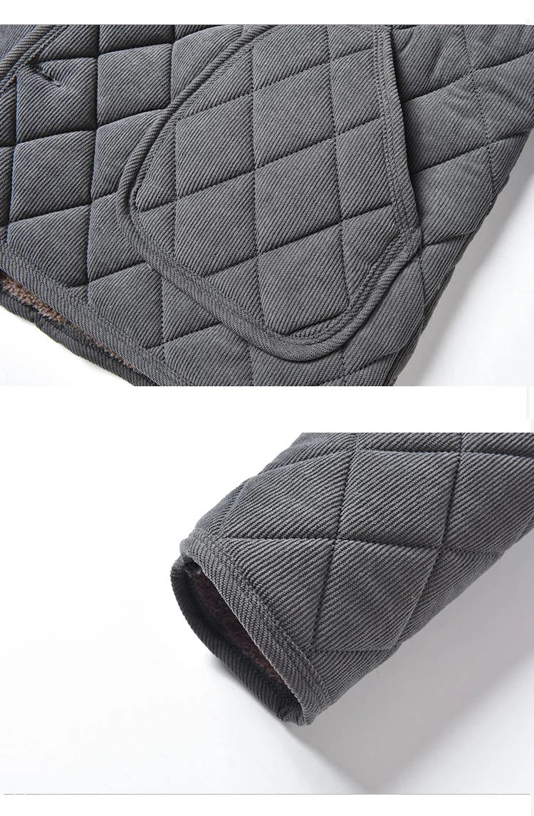 Mens Winter Jacket Windproof Thickened Padded Jacket Casual Diamond Warm Fleece Lined Coat Middle-Aged Dad's Solid Outdoor Wear