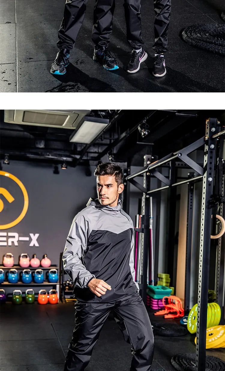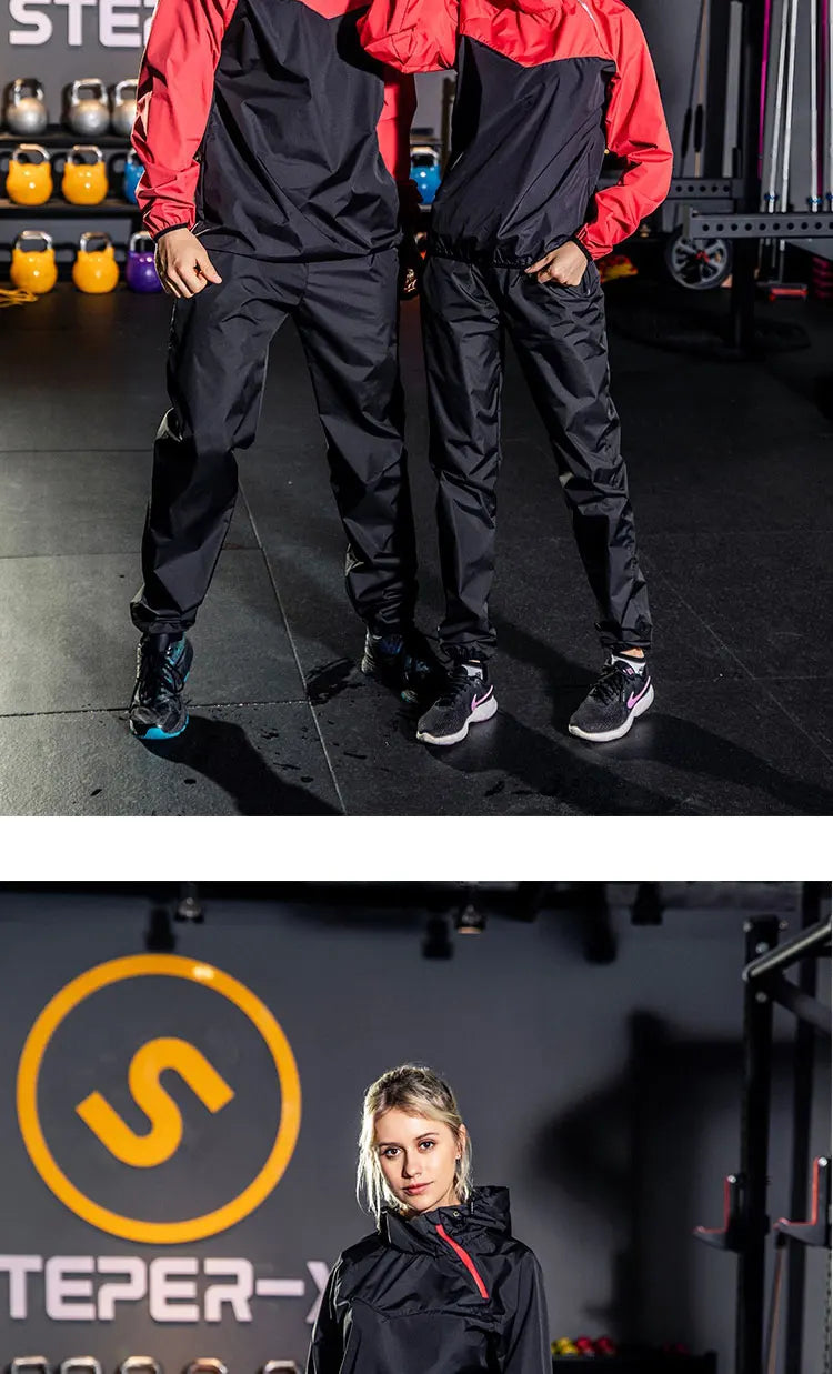 Sauna Suit Women Gym Clothing Set Men Pullover Hoodies Tops Running Fitness Exercise Sportswear Weight Loss Sweating Sports Suit