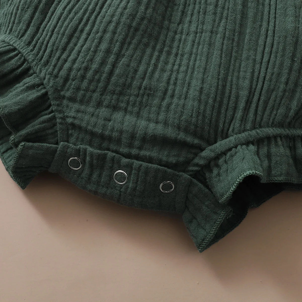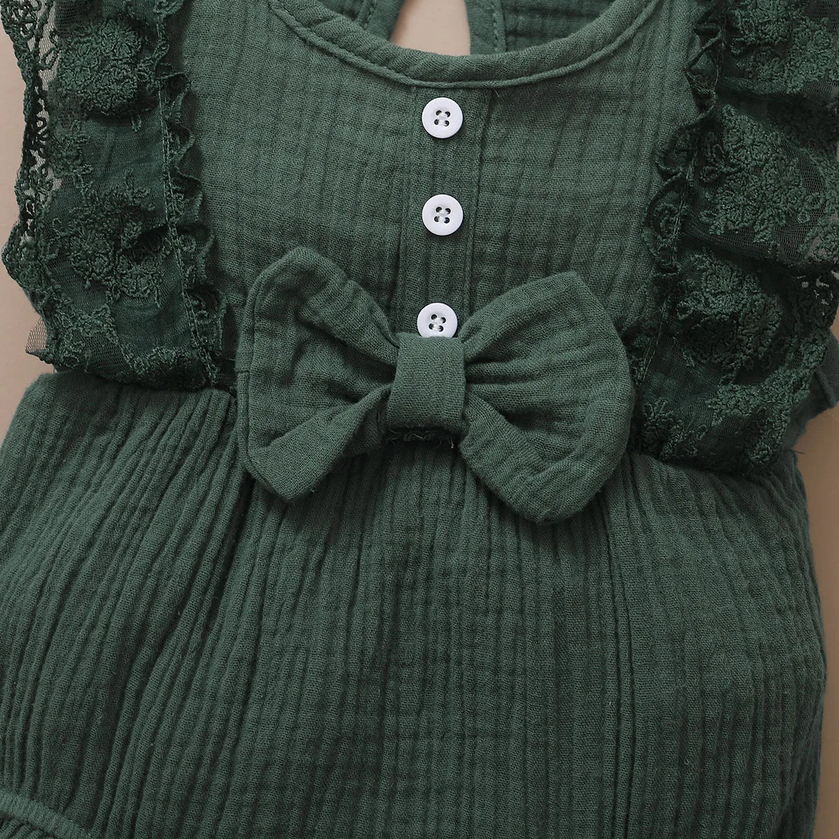 0-18 Months Newborn Baby Girl Plain Soft Bodysuit Lace Flared Sleeve Summer Romper with Headband Toddler Baby Girl Clothing