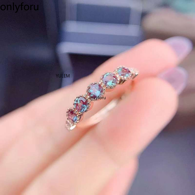 Beautiful 925 Sterling Silver 3mm Color Change Stone Lab Grown Alexandrite Ring Engagement Wedding Ring for Women Gift