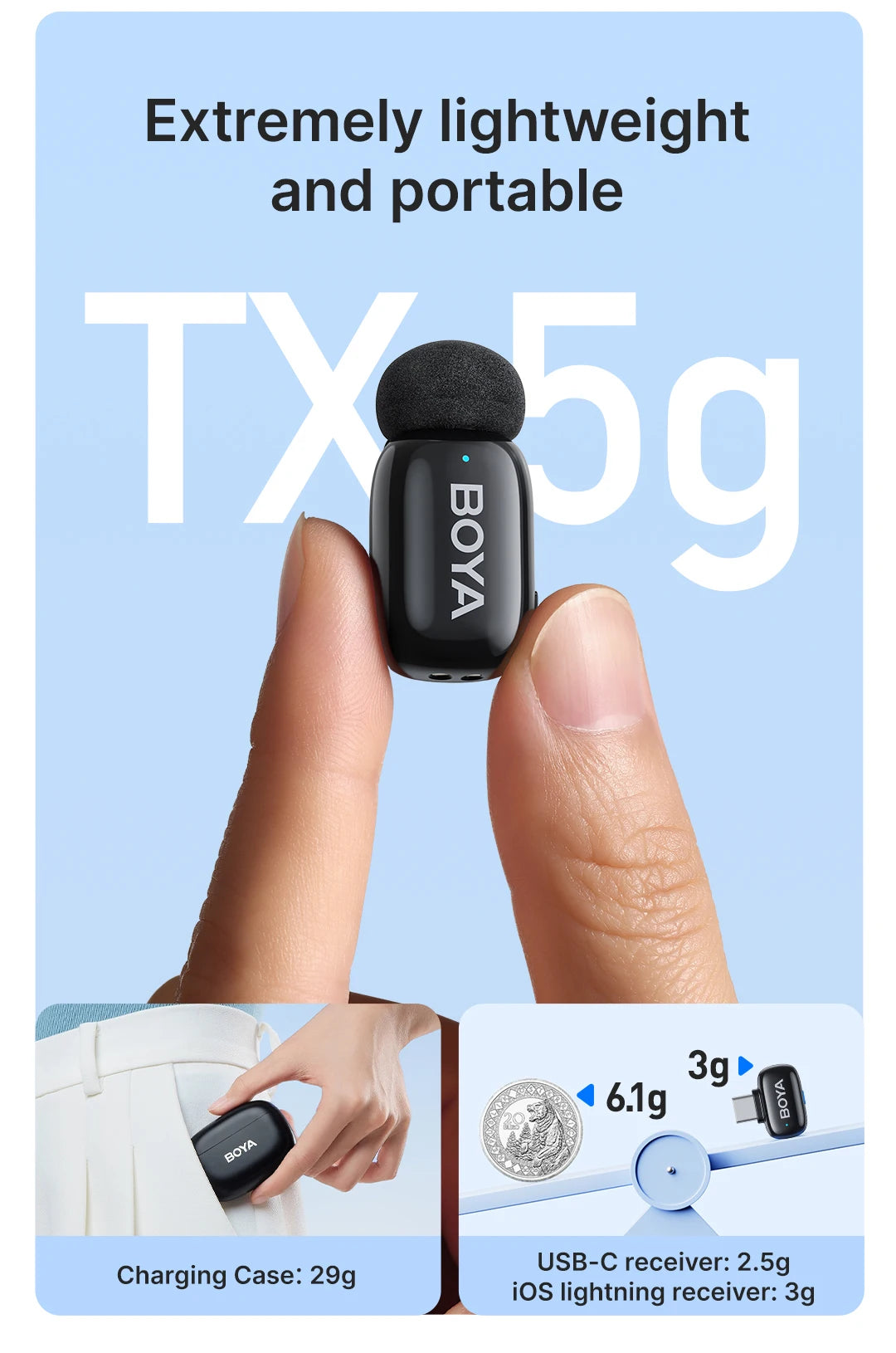 BOYA BOYA Mini Wireless Lavalier Microphone for iPhone 15/16 Android Phone USB-C Devices for Live Streaming Video Recording Vlog