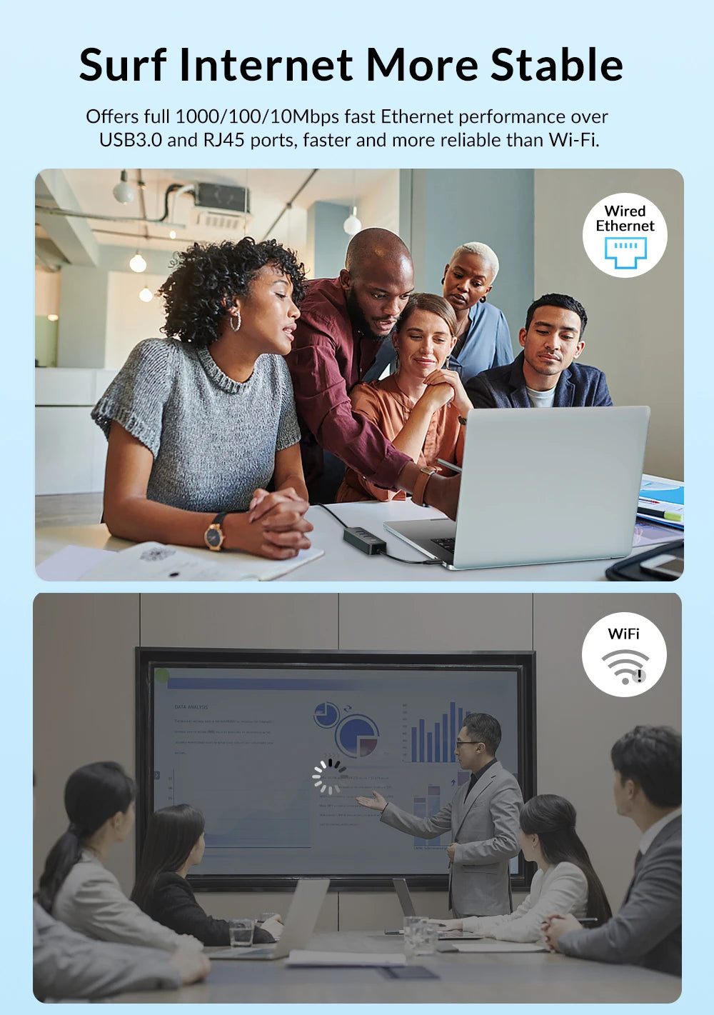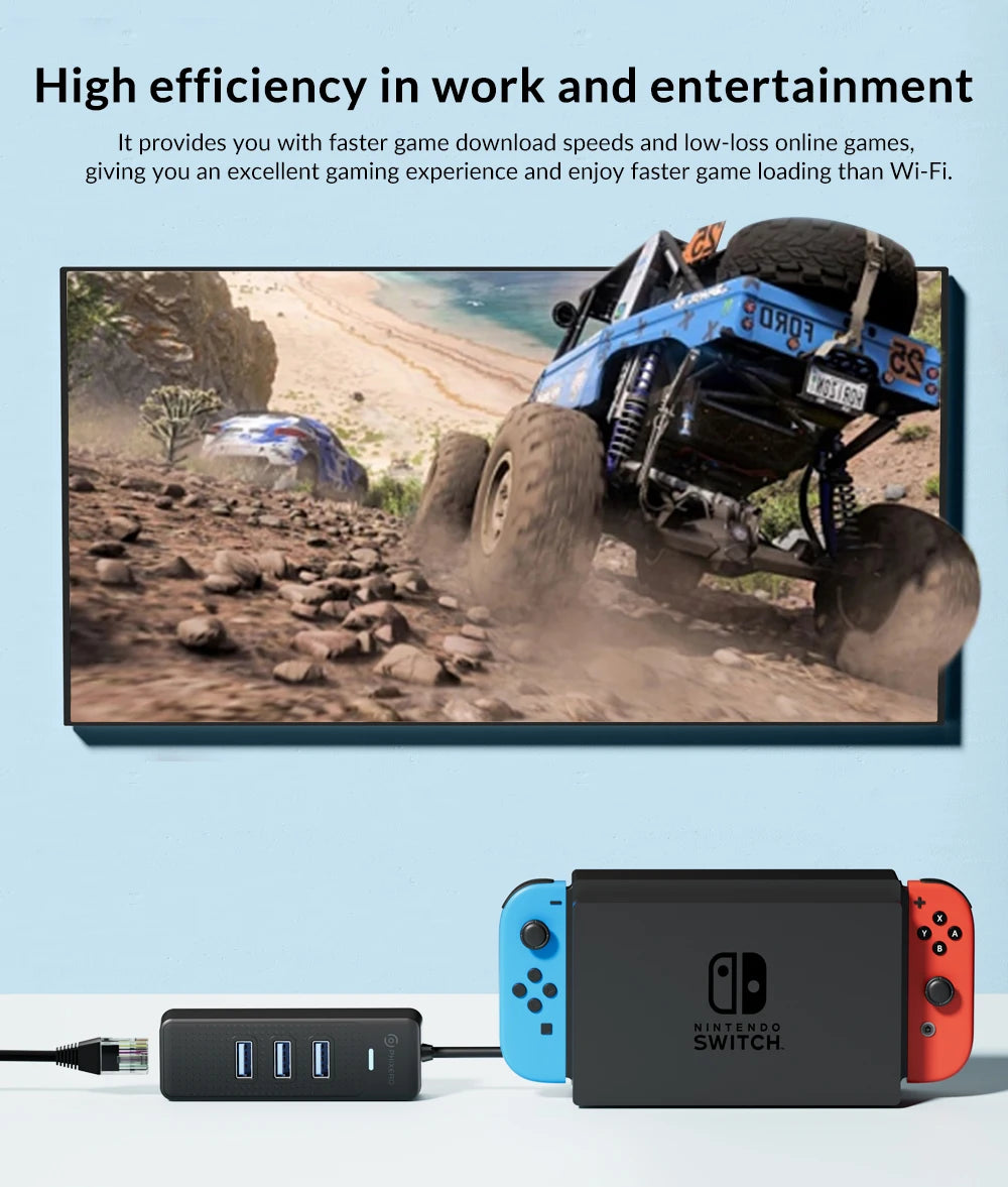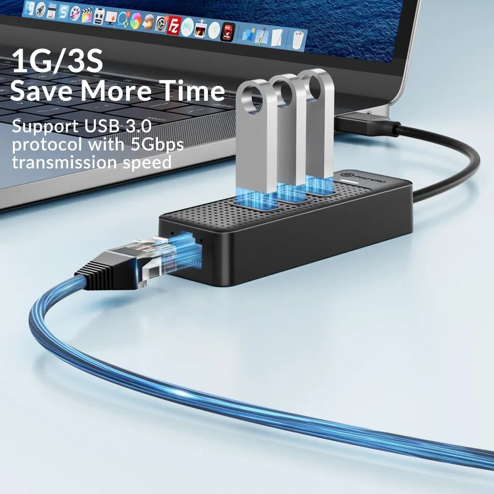PHIXERO USB 3.0 Hub 2500Mbps Ethernet With RJ45 USB Splitter Multi Port Data Adapter Expander for Laptop Computer PC Accessories