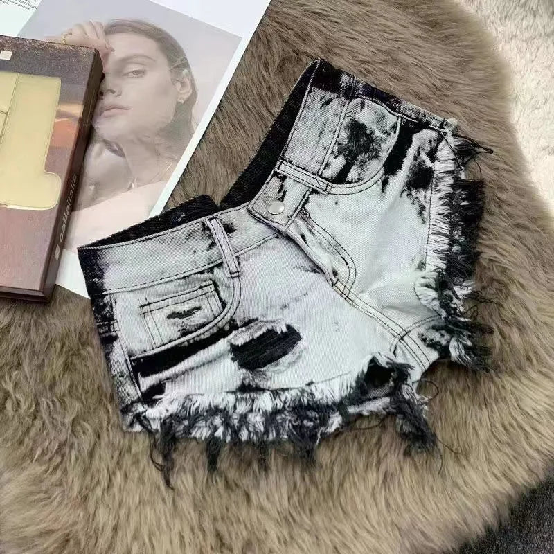 Slimming Skinny Denim Hot Pants - Vintage Wash Ultra Low-Rise Distressed Y2K Sexy Shorts for Baddie Street Style