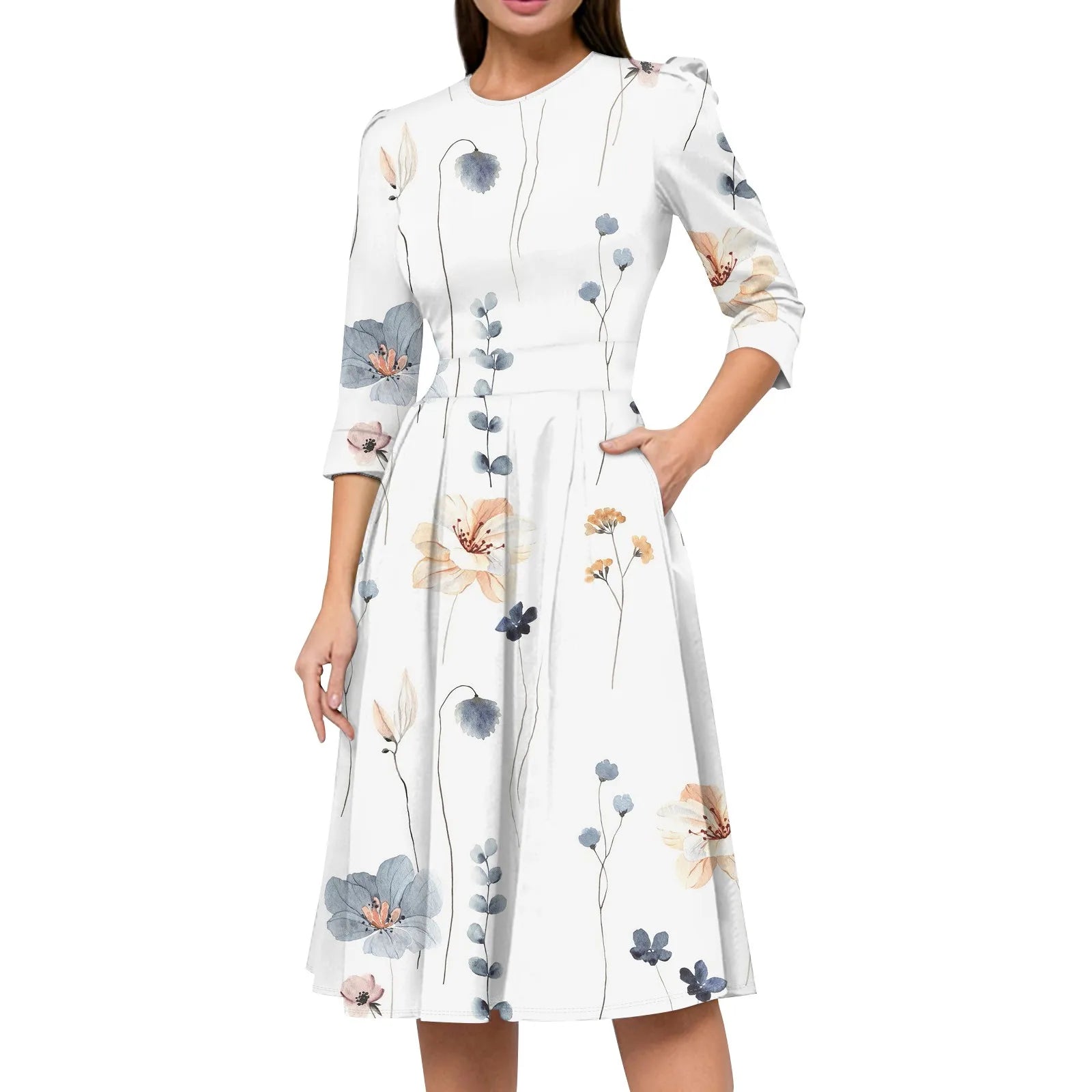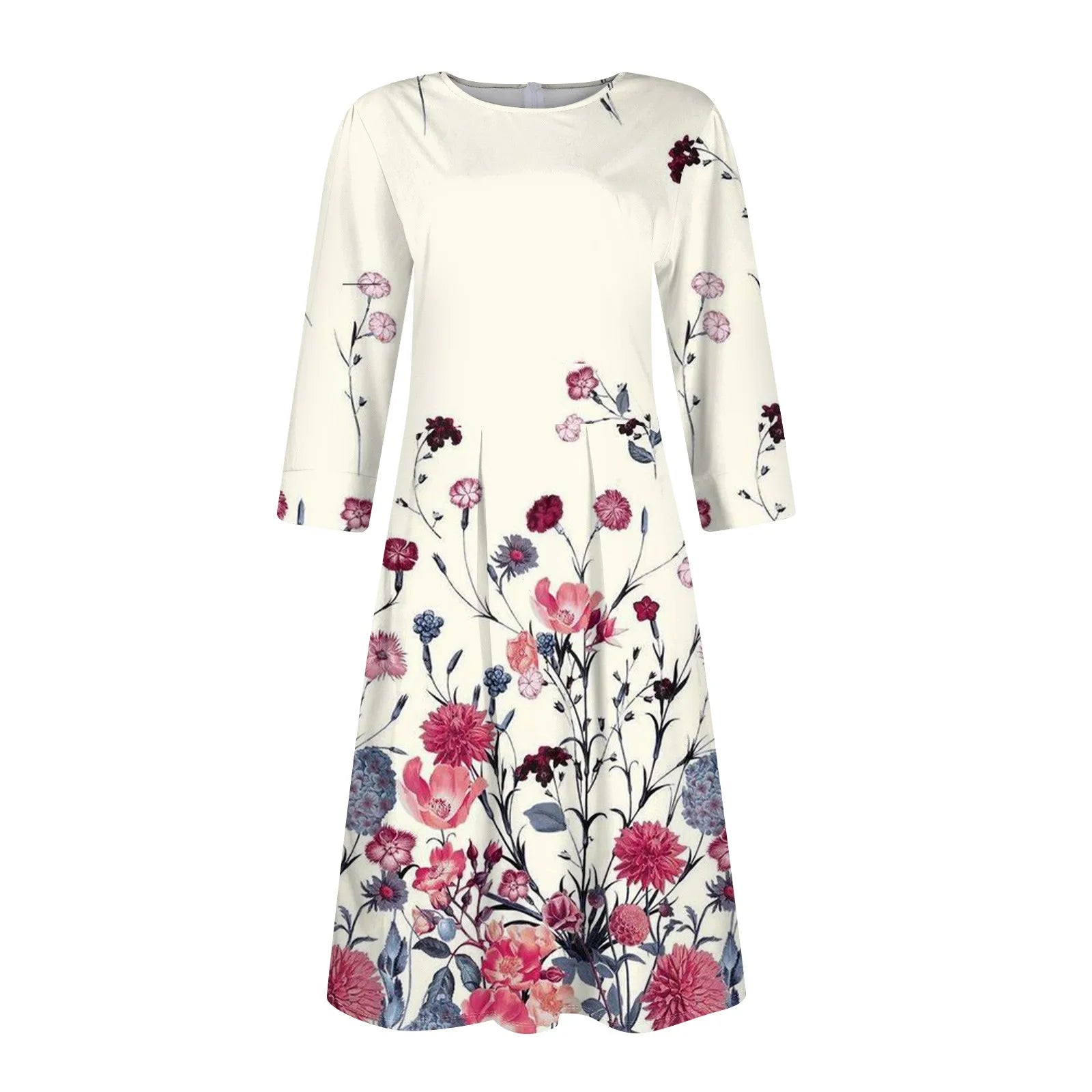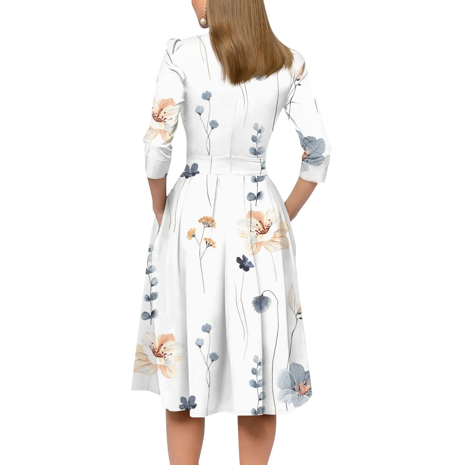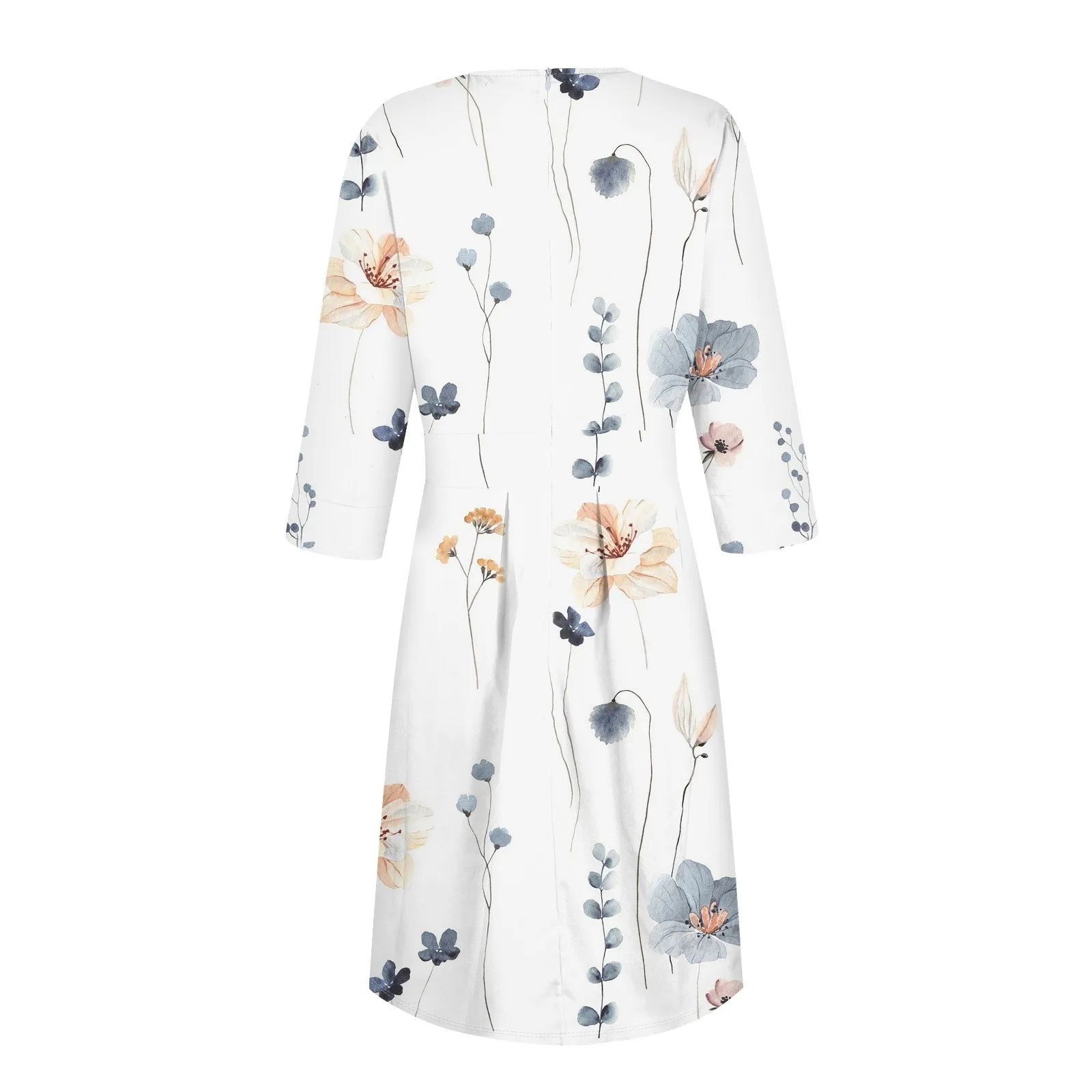 Traf Women 2025 Women'S Casual And Fashionable 3/4 Sleeve Pocket With Back Zipper Dress