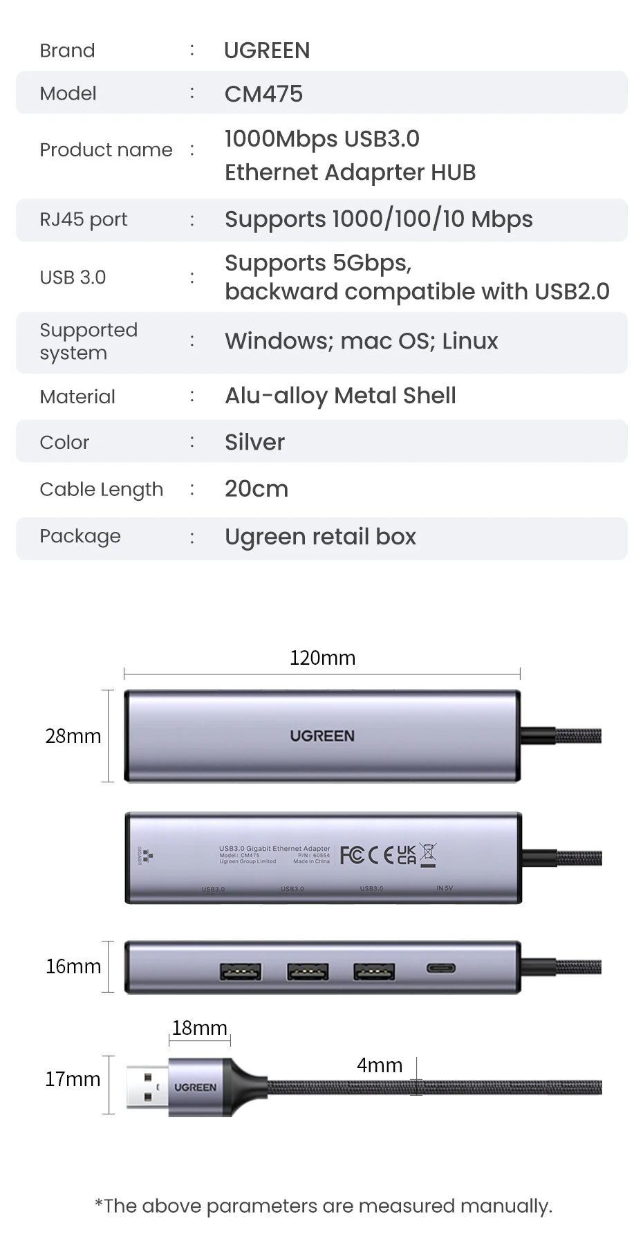 UGREEN USB Ethernet Adapter 1000/100Mbps USB3.0 HUB RJ45 Lan for Laptop PC Xiaomi Mi Box Macbook Windows USB-C HUB Network Card