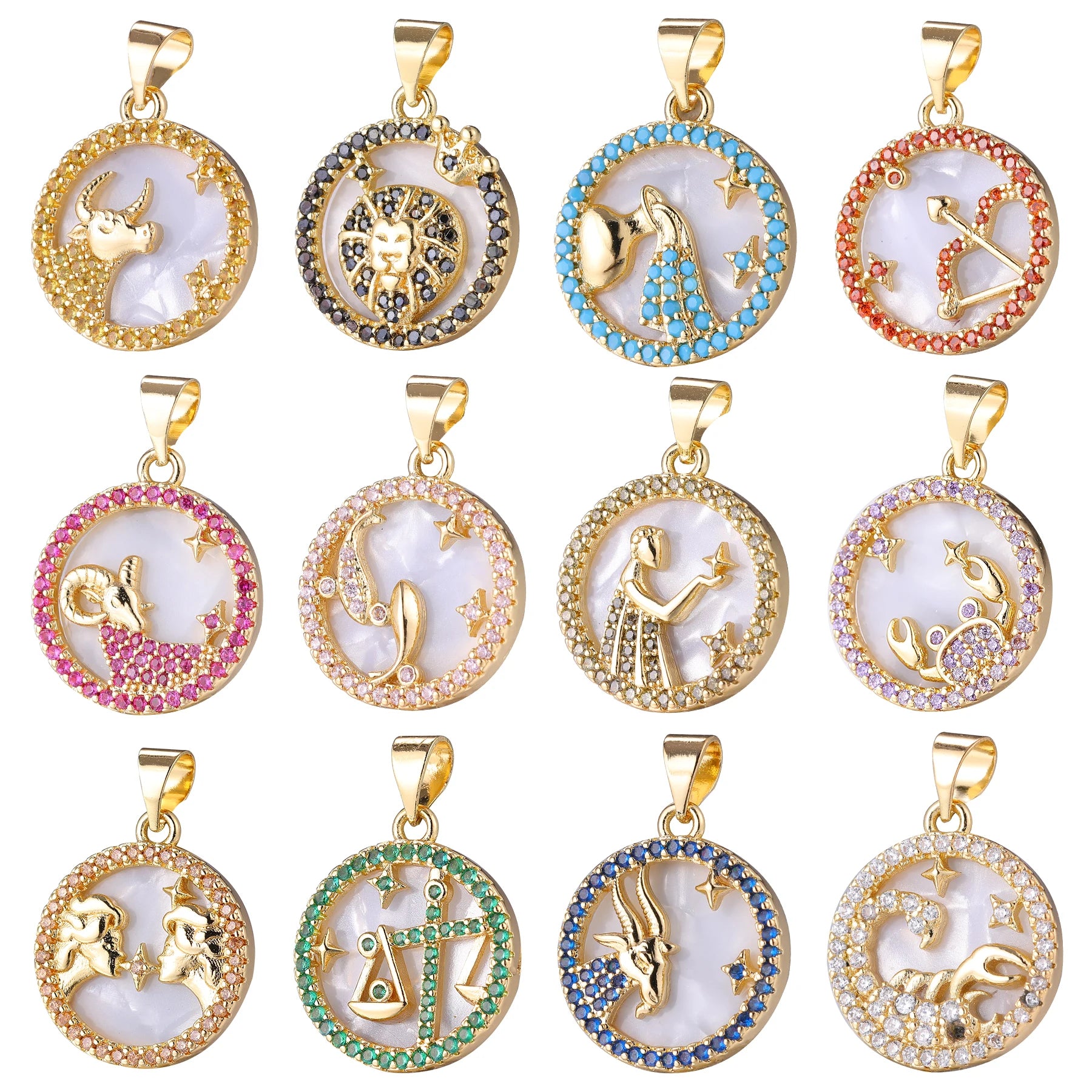 Juya DIY Imitation Pearl Shell 18K Gold Plated 12 Zodiac Charms For Handmade Fashion Birthstone Season Pendants Jewelry Making
