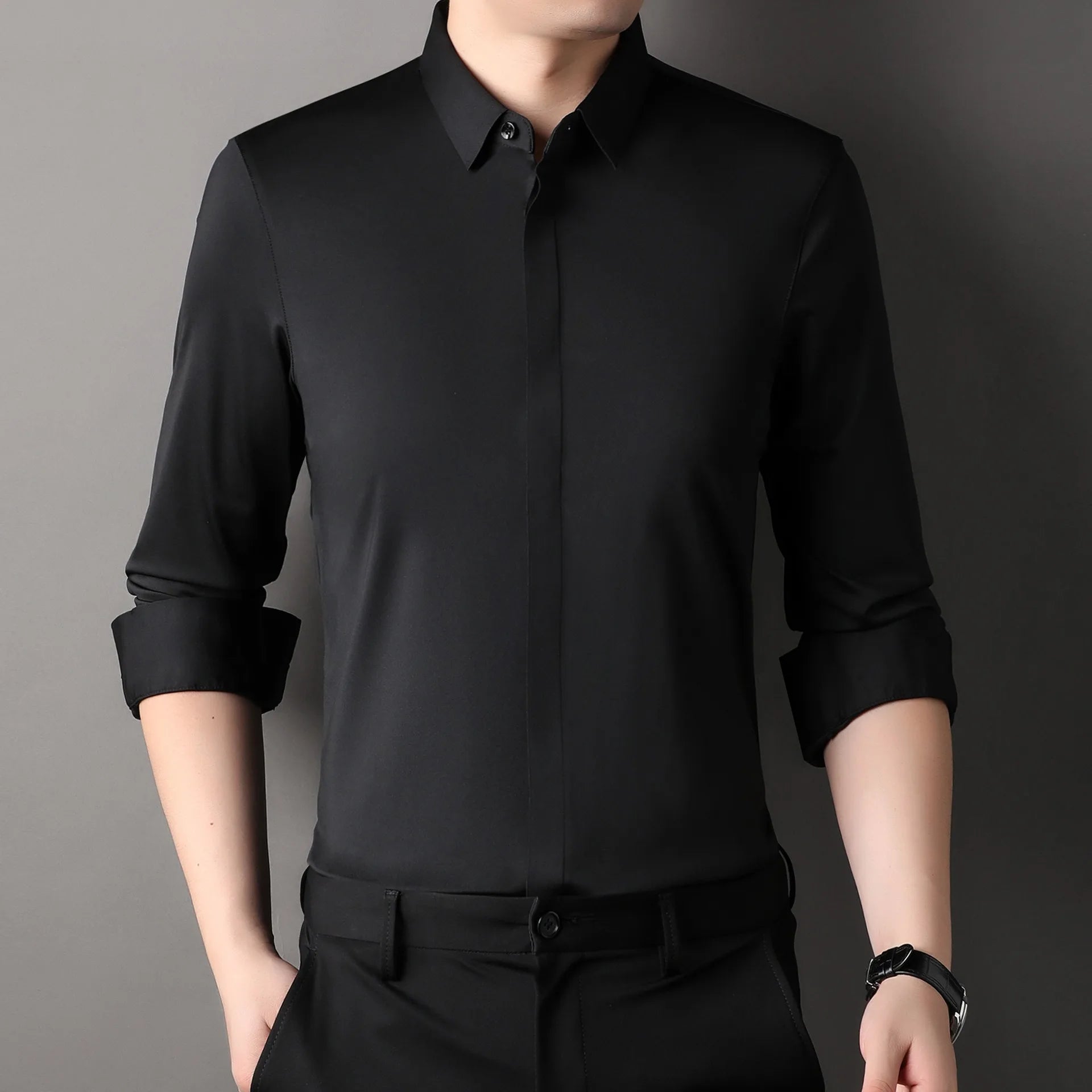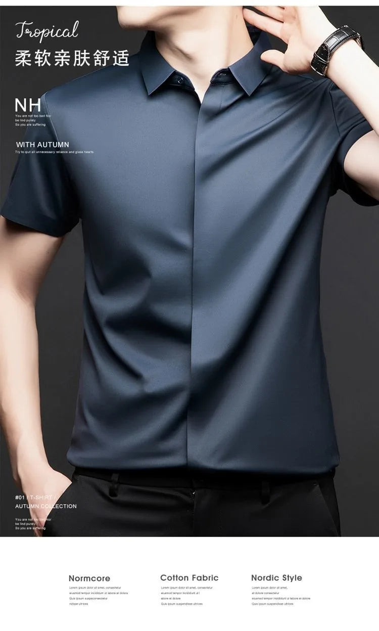 Mulberry Silk Business Dress Shirt - Men's Wrinkle Resistant