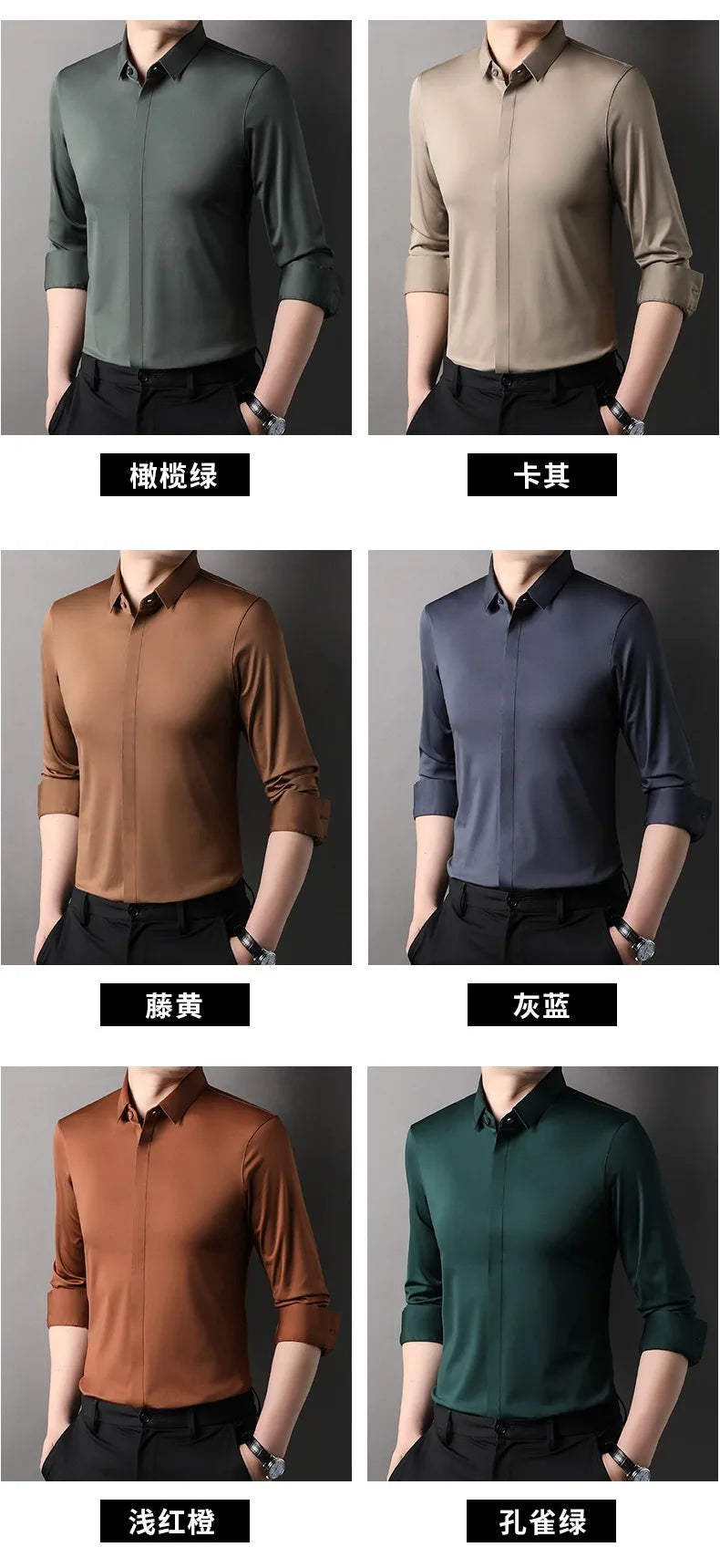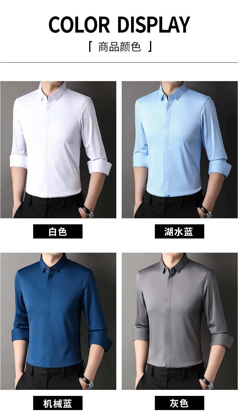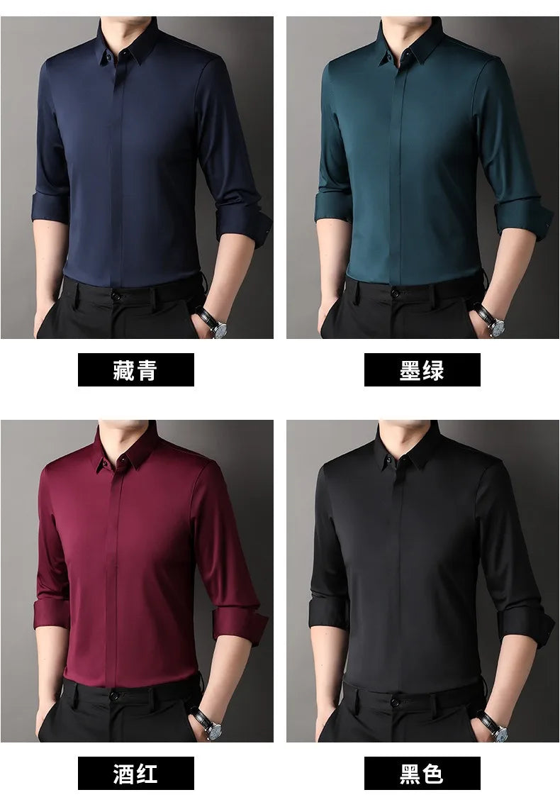 Buddy Medhurst High end Mulberry Silk Dress Shirts Business Men Wrinkle Resistant Button Invisible Elastic Tops Luxurious Male Quality Clothing