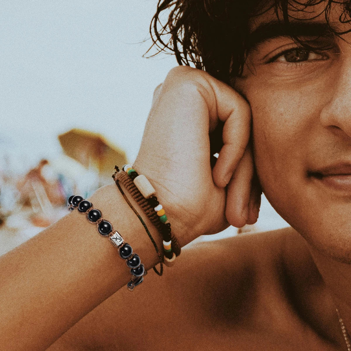 12 Zodiac Natural Stone Obsidian Hand-Woven Bracelets Cancer Pisces Men's Bracelets Couples Friendship Jewelry pulseras hombre