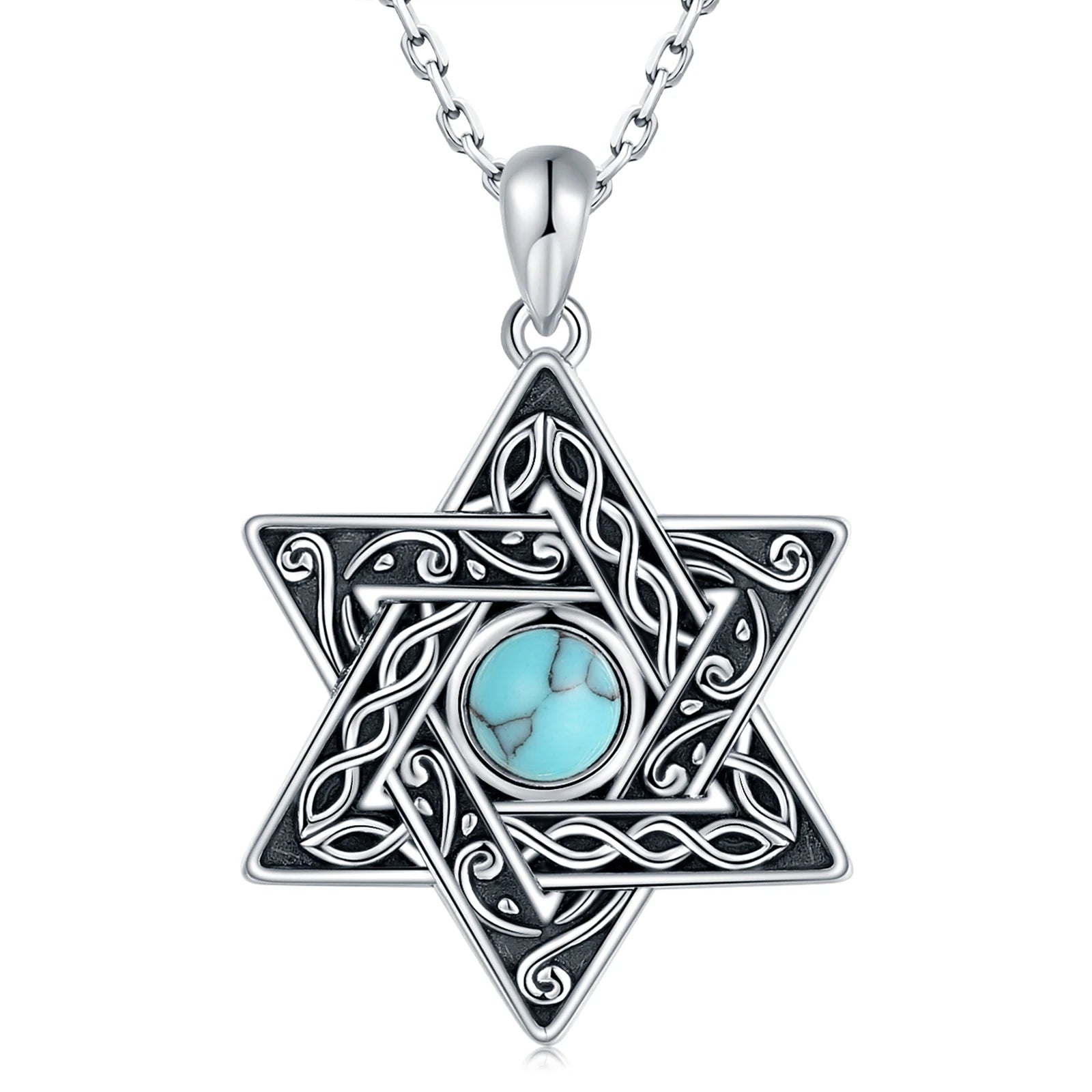 925 Sterling Silver Star of David With Shiny Turquoise Love Heart Pendants&Necklaces For Women Wife Jewelry Valentine Day Gifts