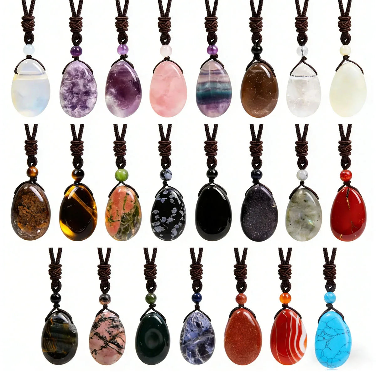Casual Simple Natural Water Droplet Pendant Necklace Amethyst Opal Obsidian Red Agate Pendant Adjustable Cord Chain Necklace