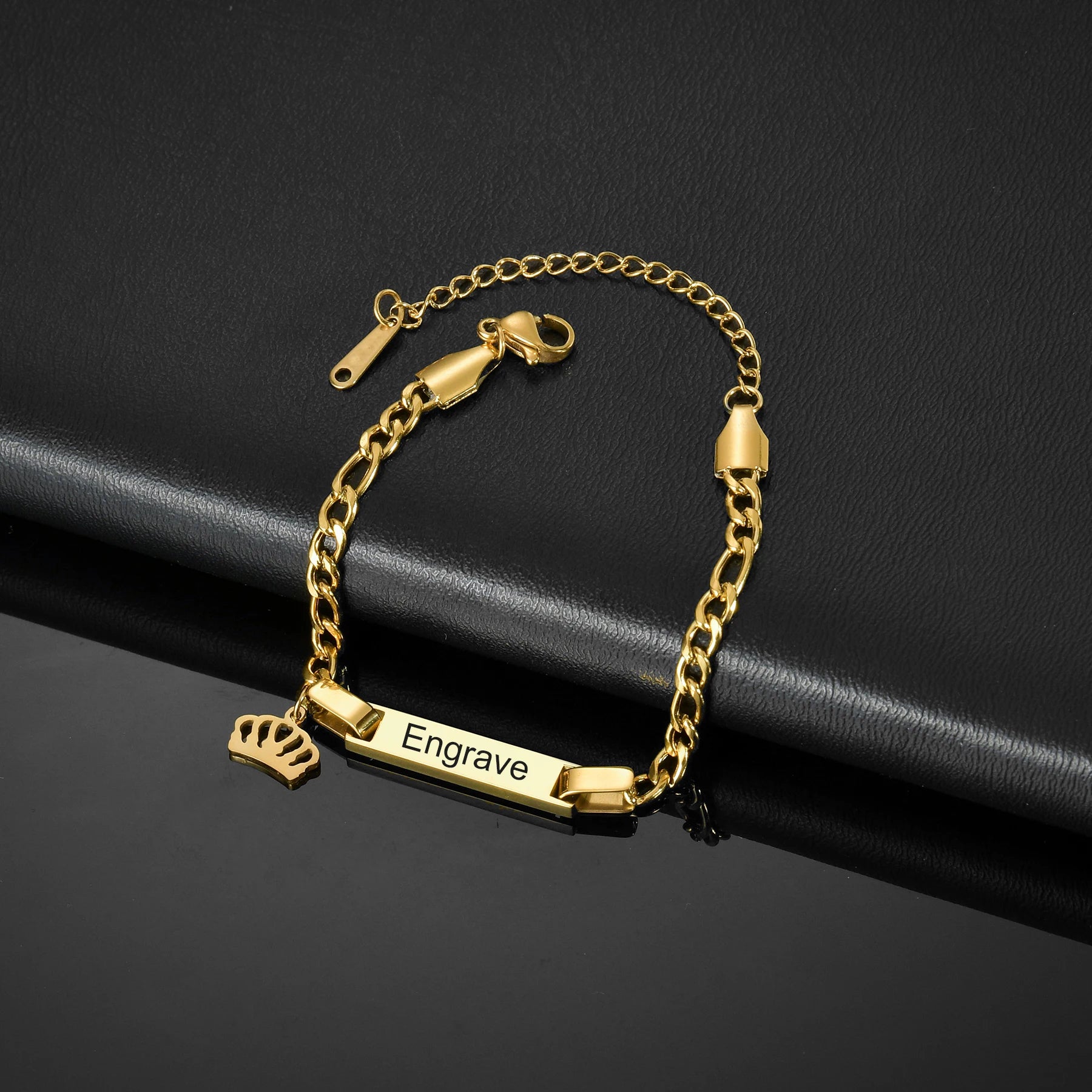 Custom Engrave Children's Name Bracelet 35cm Necklace Stainless Steel Jewelry Sets for Kids Baby Personlized Crown Birthday Gift