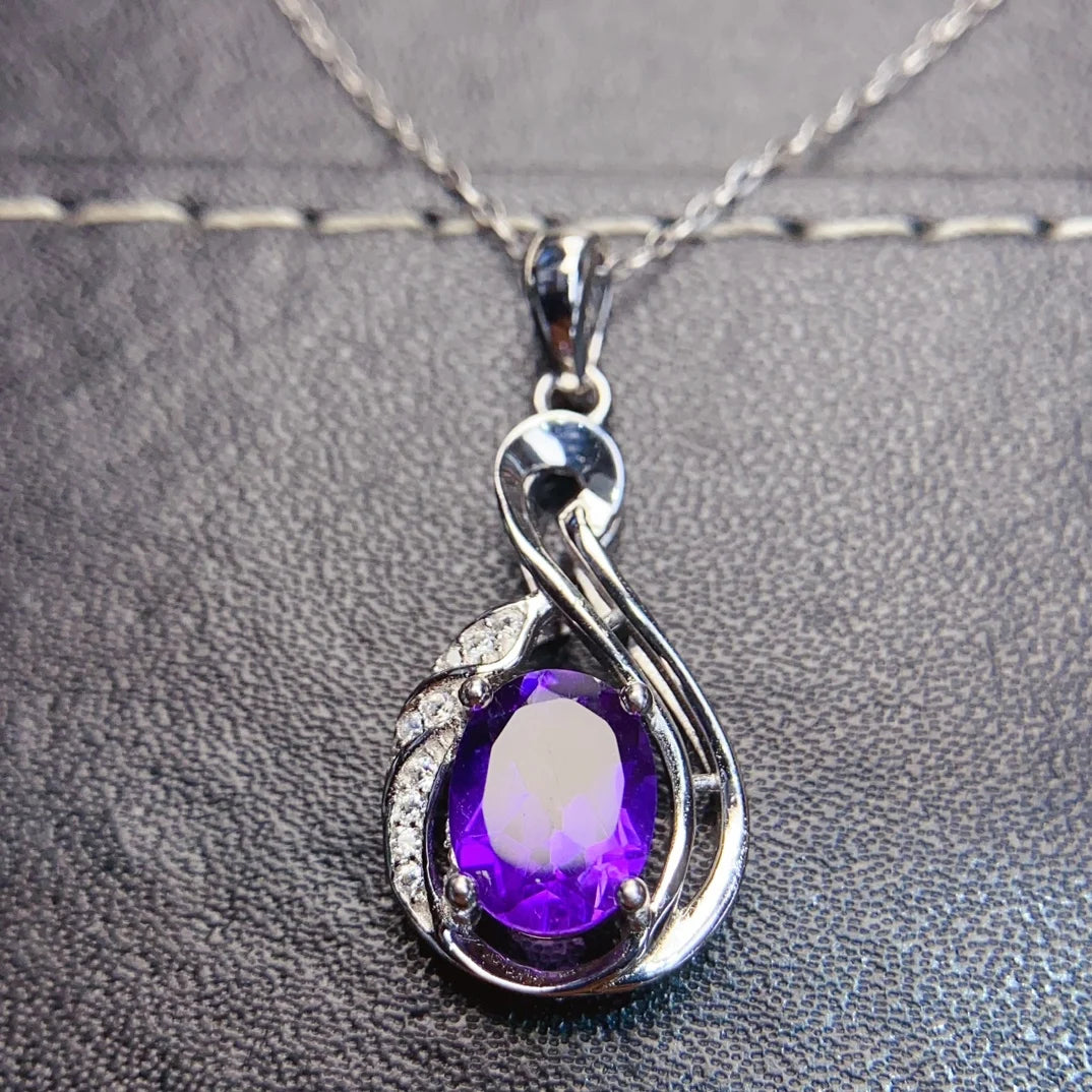FS S925 Sterling Silver 7*9mm Natural Citrine Pendant Necklace With Certificate Fine Charm Weddings Jewelry for Women MeiBaPJ