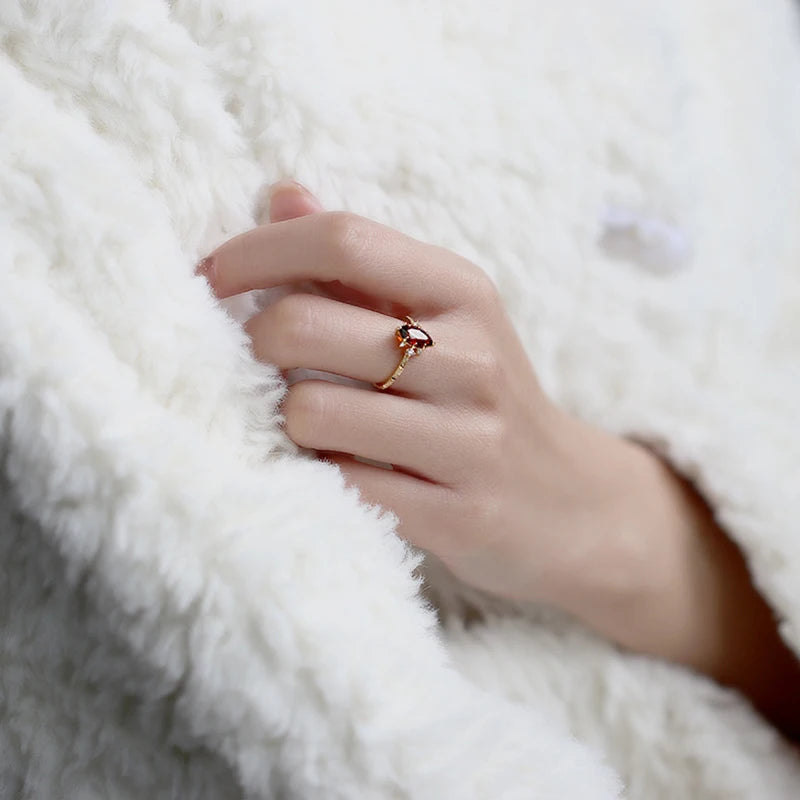 LAMOON Vintage Natural Garnet Rings For Women Natural Gemstone Luxury Wedding Engagement Ring 925 Sterling Silver Gold Plated