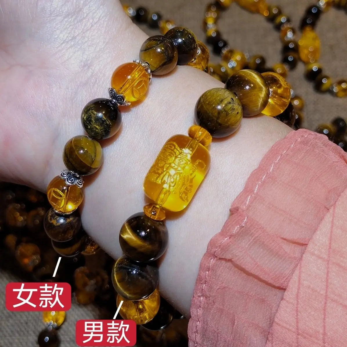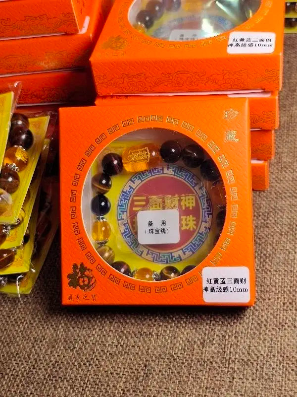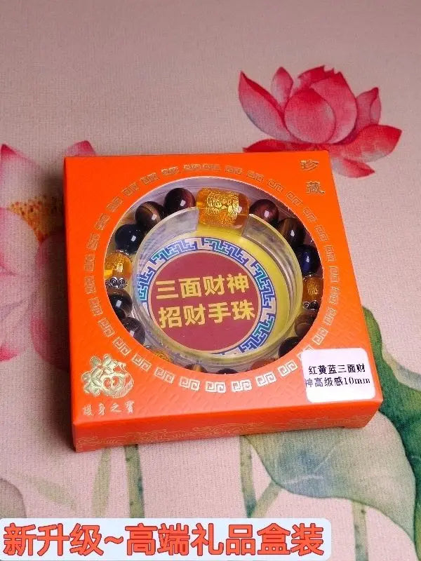 Natural Tiger's Eye Stone Three-sided God of Wealth Bracelet Auspicious Lucky Lucky Safe Men's and Women's Hand String Couple's